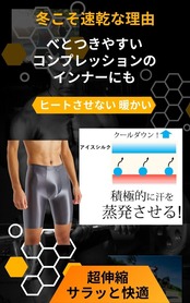 光沢は滑らかな動きのために 汗でベタつきやすいコンプレッションウエアやアウターとの滑りが良く 引っかかったり張り付かず 股ずれ防止機能と相まって軽快な動きを保ち 脱ぎ着も楽にできます 速乾素材は冬の部屋干しでも乾きが早く スポ―ツシーンをサポートします