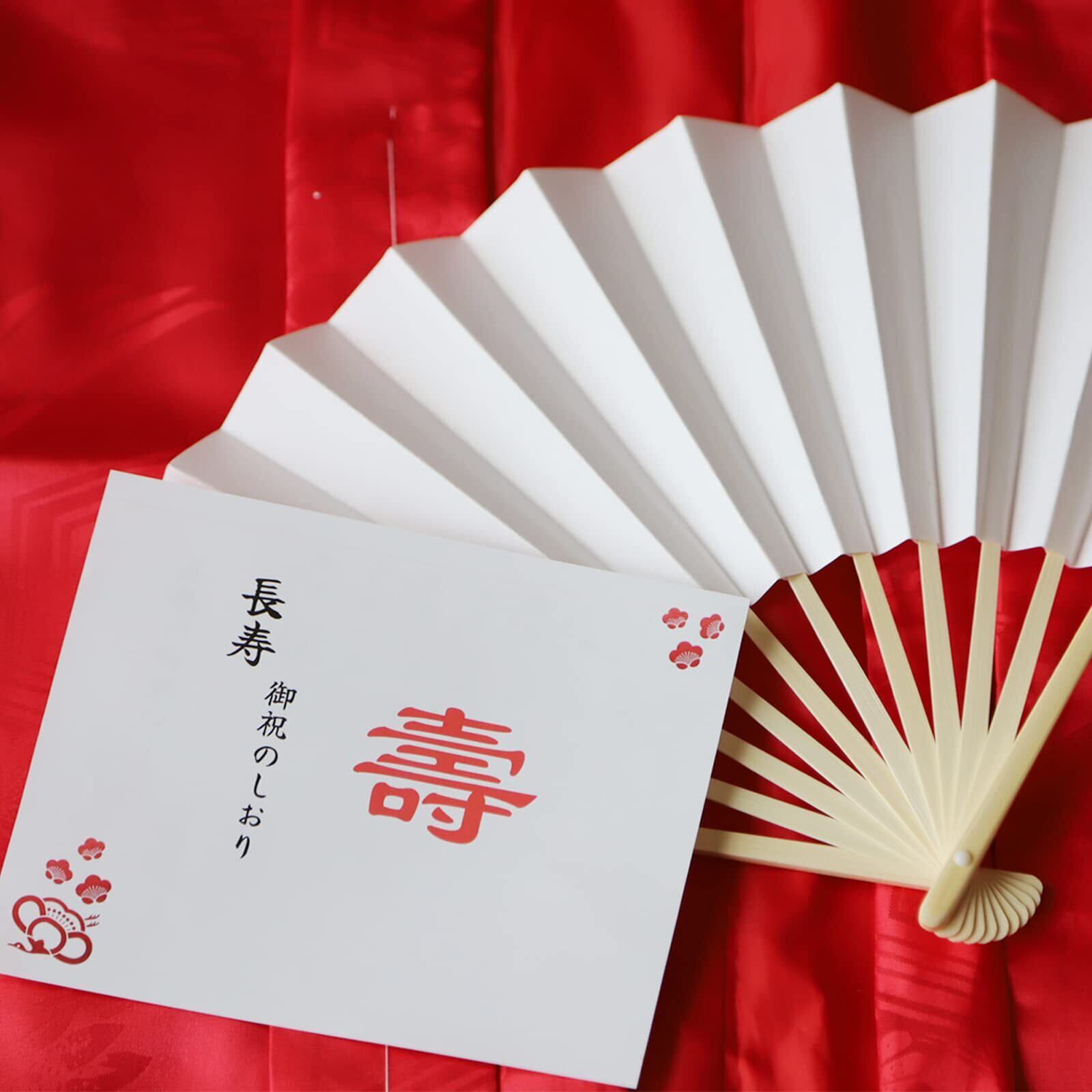 品質:頭巾、ちゃんちゃんこ:ポリエステル100%。扇子:竹、和紙。ちゃんちゃんこと頭巾の生地に、縁起のよい「鶴」と「亀甲文」の文様が入っており、上品な光沢感と共に、高級感あふれる仕上がりです。扇子は縁起の良い末広がりの白扇子です。簡単にご説明いたしました「御祝いの栞」も同封いたします。