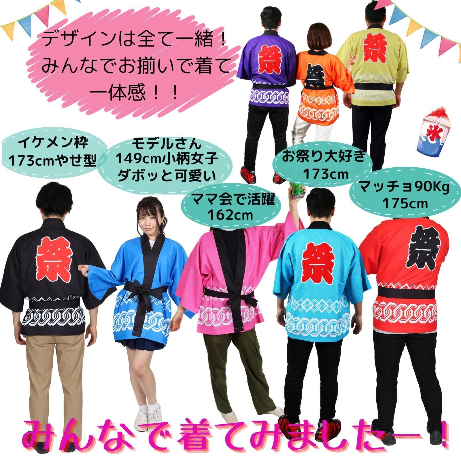 お祭り、学校行事、会社のイベント、ホームパーティー!!使い方は無限大彡羽織るだけで楽しい雰囲気になります!!是非、お揃いで着てみてくださいね。