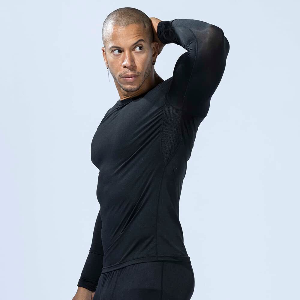 おたふく手袋 夏用インナー 長袖 丸首[吸汗速乾 消臭 接触冷感 コンプレッション メンズ] JW-623 ブラック Lサイズ