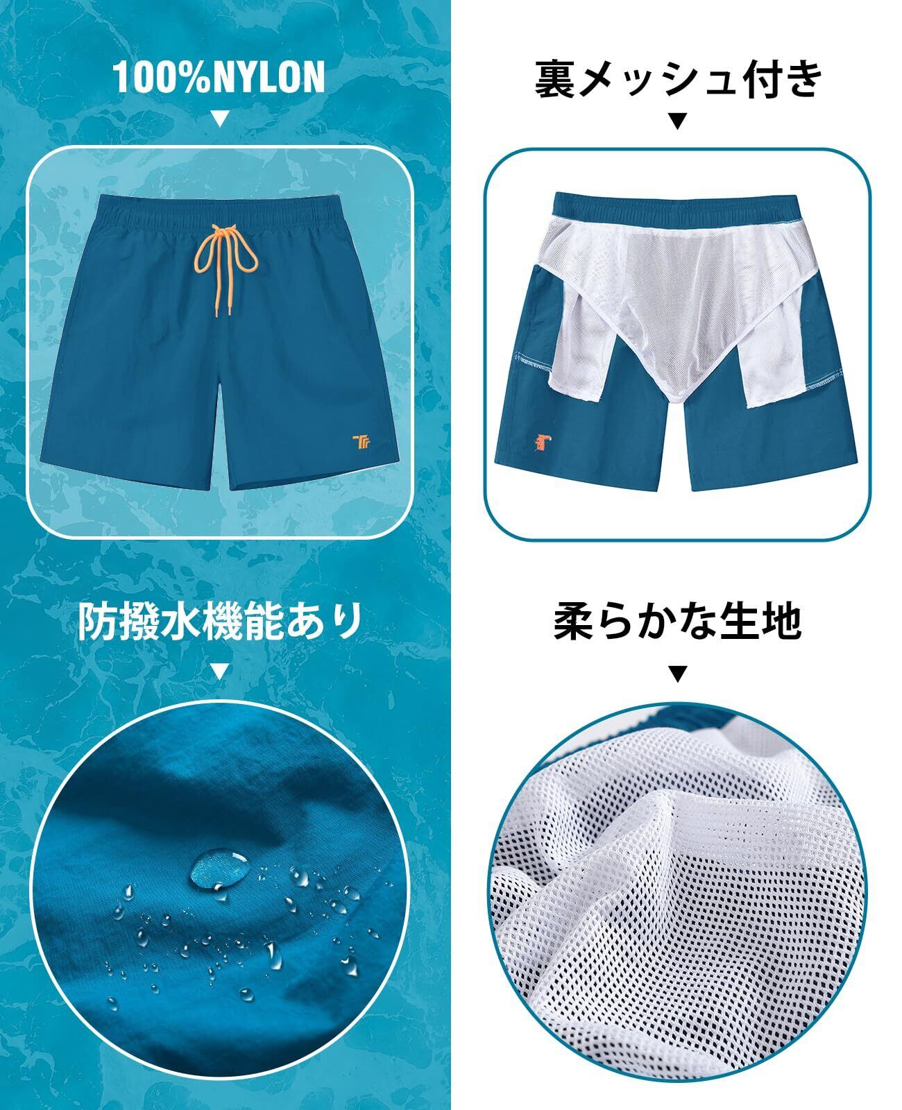[YSENTO] 水着 メンズ 膝上 サーフパンツ 水陸両用 メッシュインナー付き ゴムウエスト ビーチショーツ 海水パンツ サウナ リゾート用 短パン 夏 スポーツ ハーフズボン 大きいサイズ 吸汗速乾