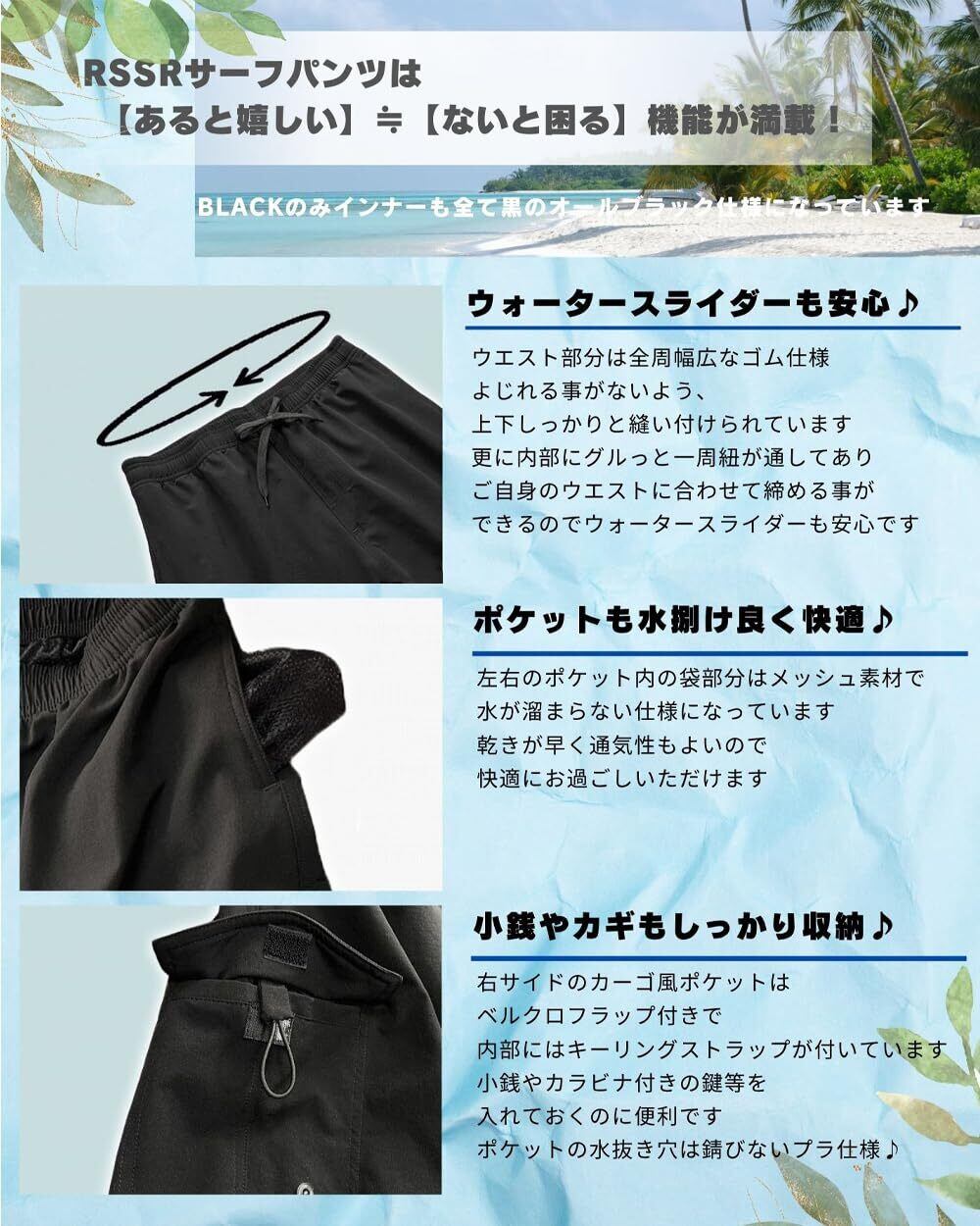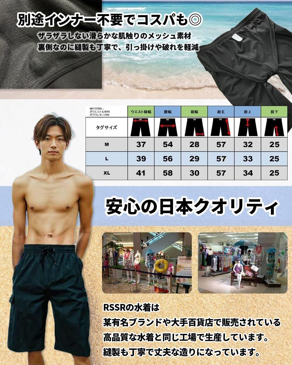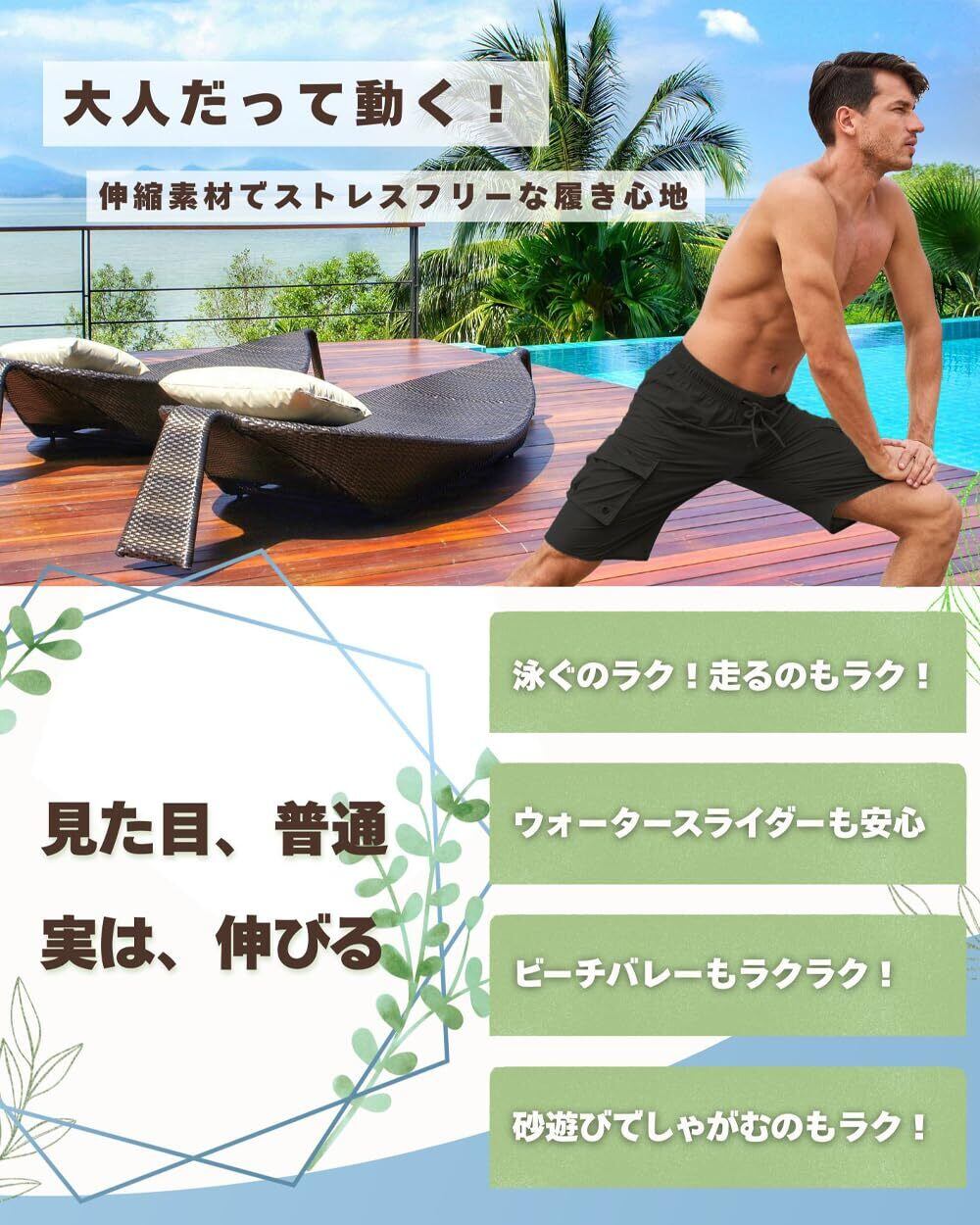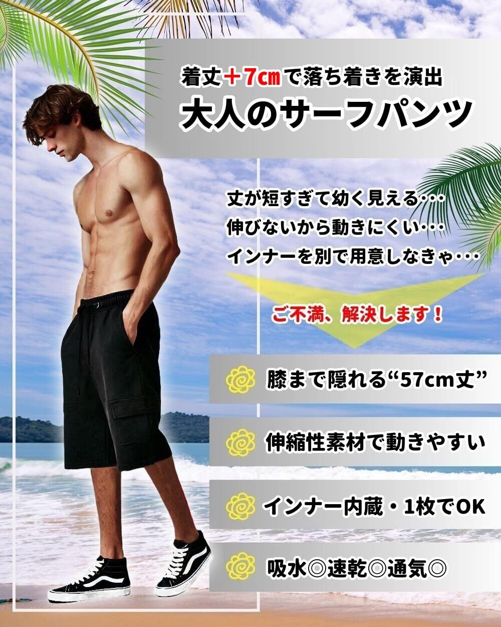水着 メンズ 【+7㎝ ロング丈】 サーフパンツ ゆったり 丈長め メッシュインナー付き 海水パンツ 海パン 短パン トランクス 水陸両用 無地