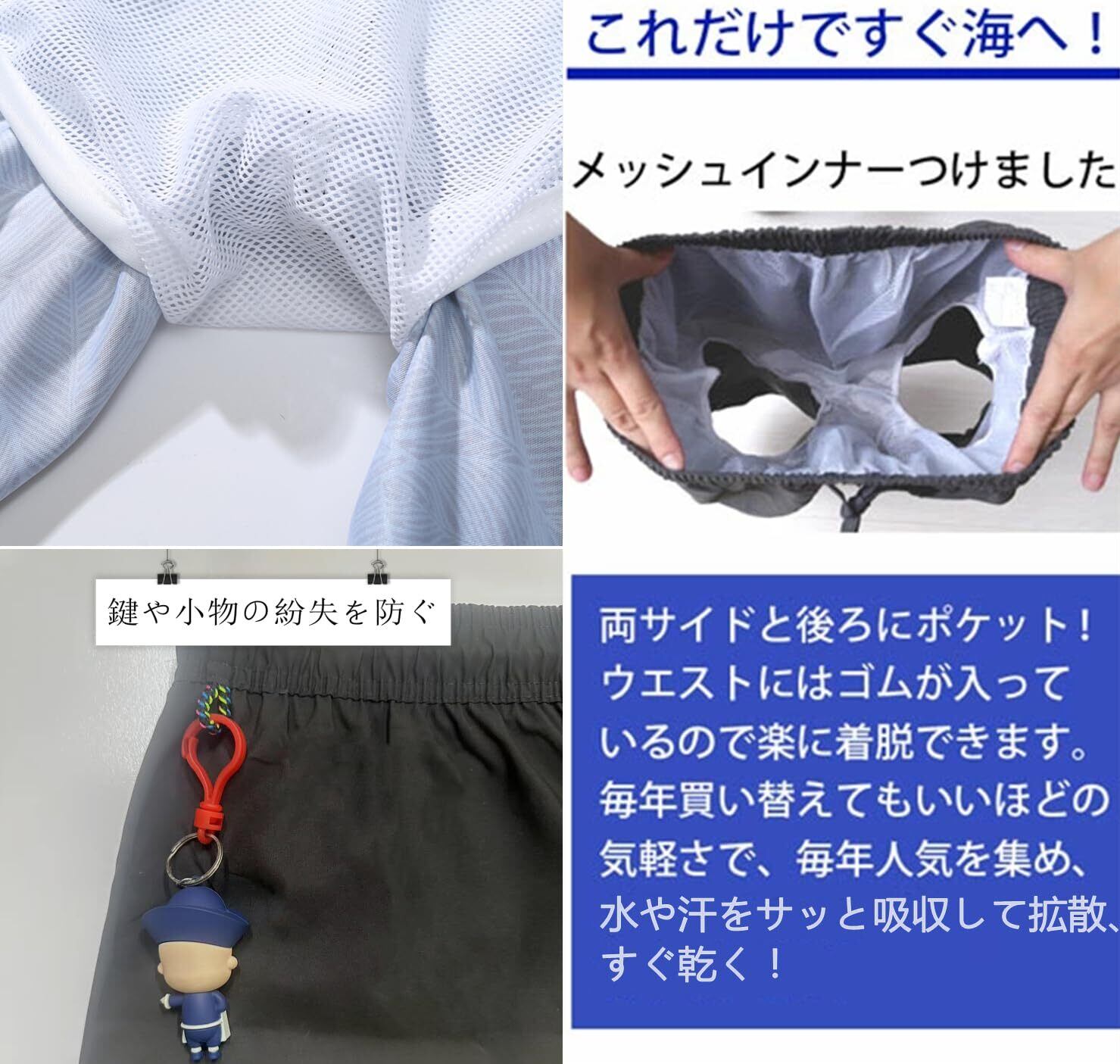 海、プール用の水着メンズだけではなく、旅行先でのリゾートショーツとしても使える。水や汗をサッと吸収して拡散、すぐ乾く!