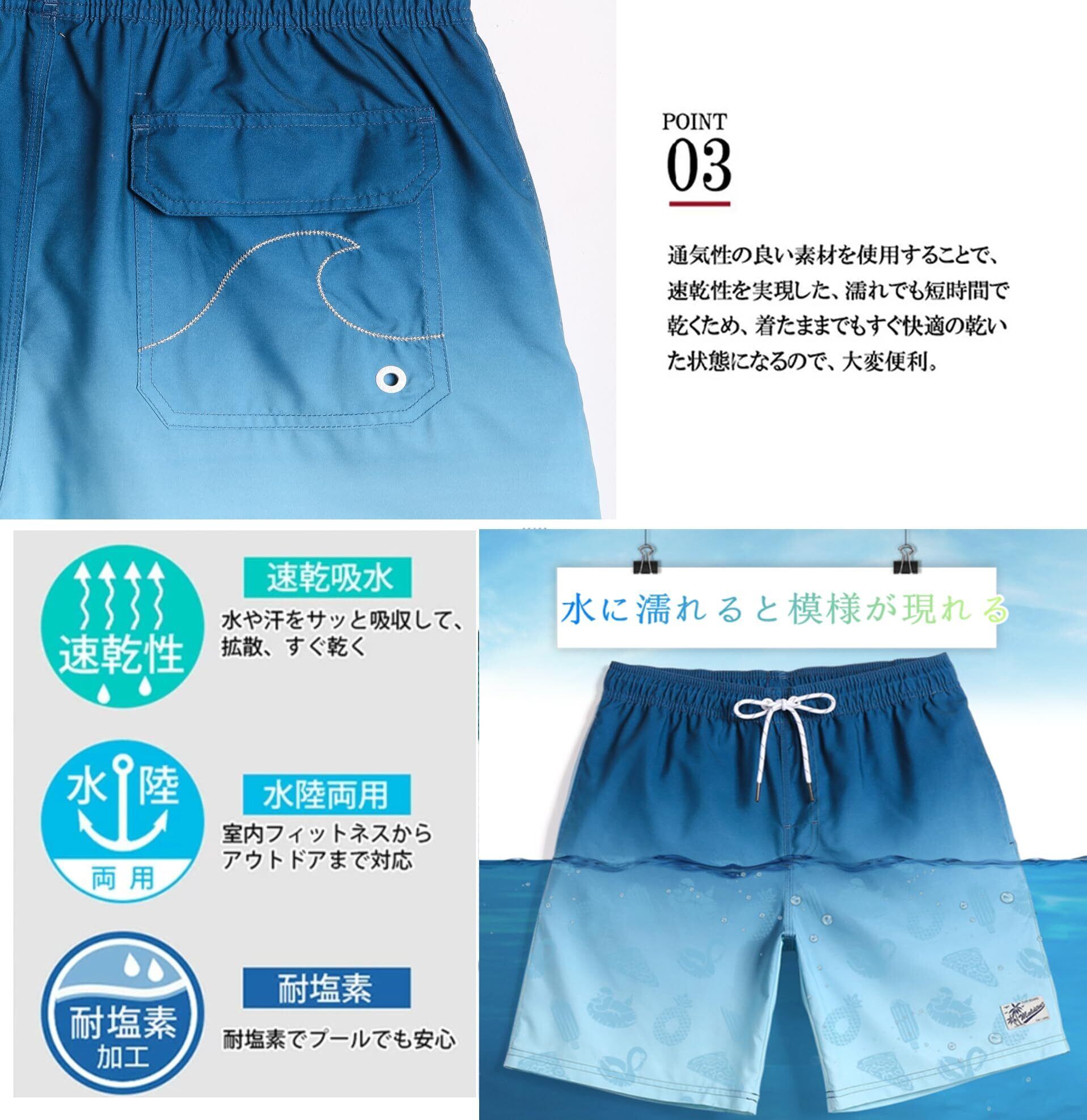 [AQRMOEYR] 水着 メンズ 海パン メンズ サーフパンツ 水着 海水パンツ 水に濡れると模様が現れる フィットネス水着 メッシュインナー 男性用 スイムウェア おしゃれ 水陸両用 速乾