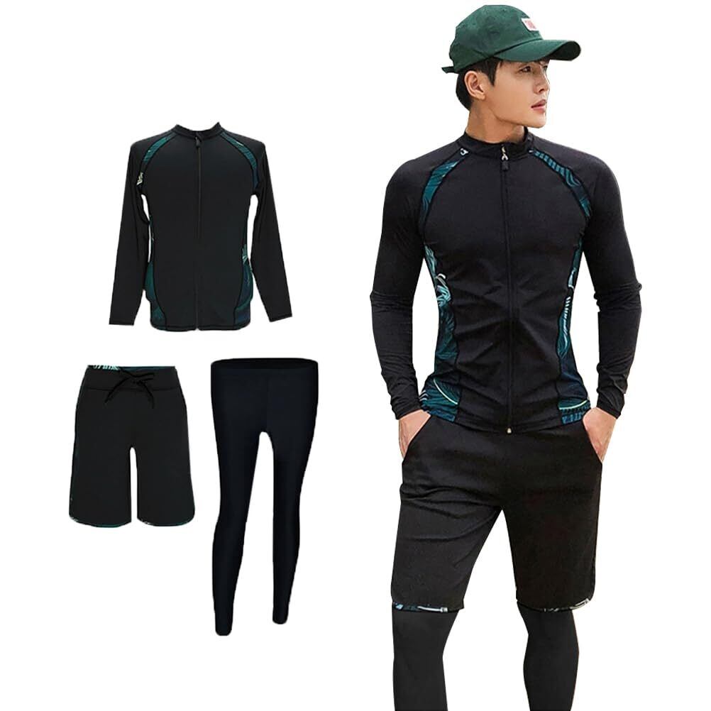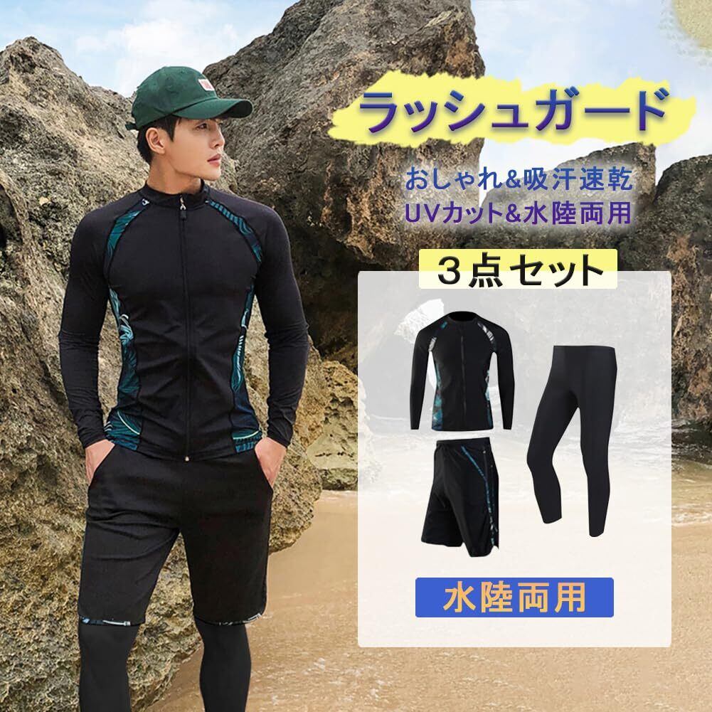 [Meetime] ラッシュガード メンズ 水着 長袖 上下セット 3点セット レギンス サーフパンツ フィットネス 男性 温泉 ビーチ 水泳 UVカット 水陸両用 吸汗速乾 おしゃれ