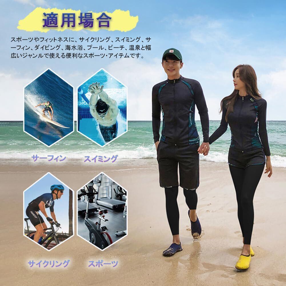 【素材構成】85%ポリエステル、15%スパンデックス。伸縮性と通気性に優れており丈夫で破れにくい素材を採用。軽量なのでとても動きやすく、最適の機能性、吸汗速乾通気のドライ繊維、激しい運動の後もさらっとした着心地!肌触りの良い素材を使用しているので、着心地は抜群。伸縮性に優れており、体形に合わせやすく、水中での動きも妨げないように体にフィットします。速乾性にも優れ、水に濡れてもすぐ乾きます、で運動も快適に行えます。