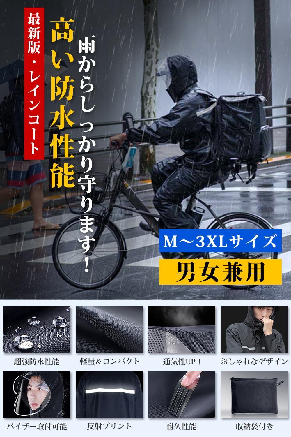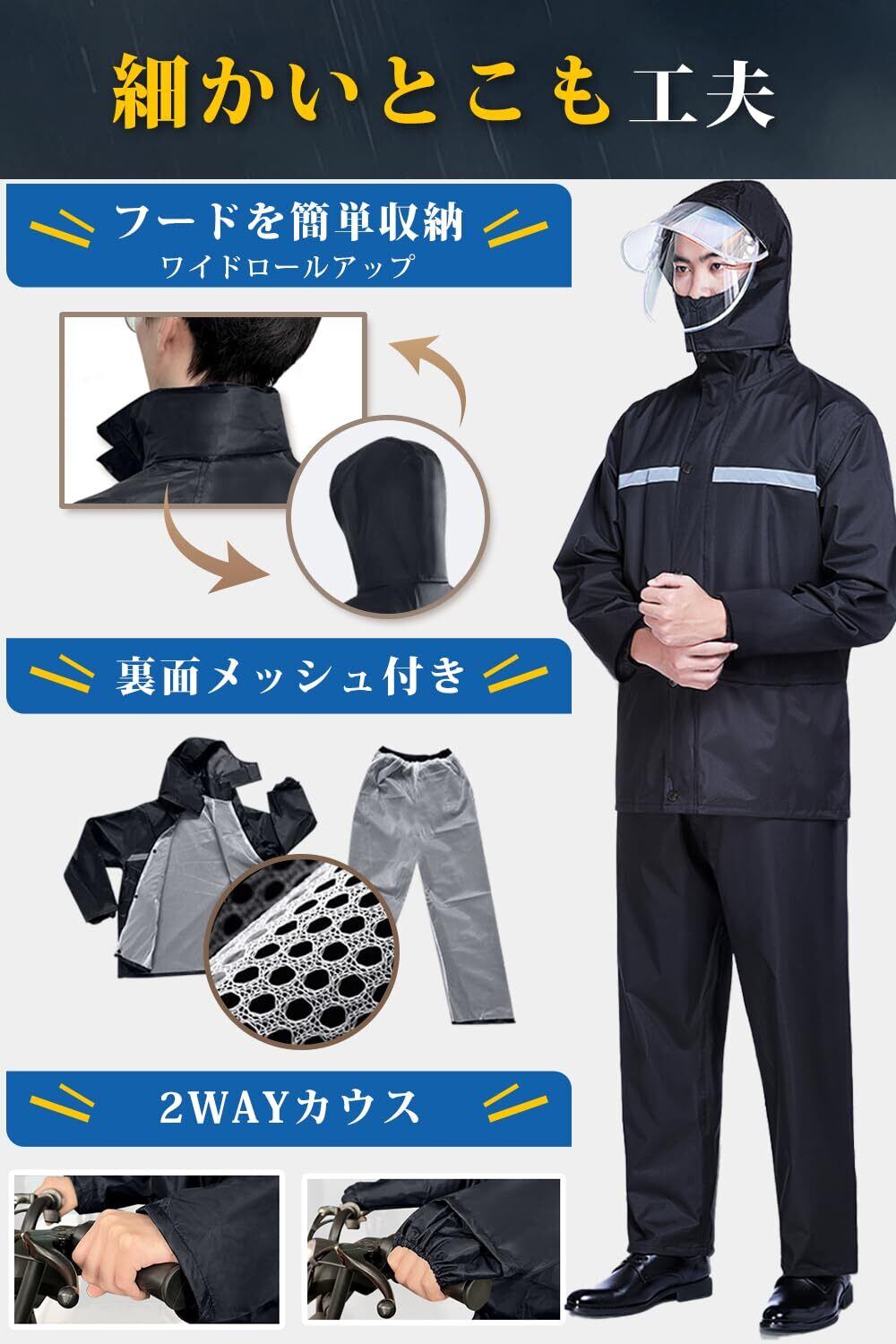 [Tanoka] レインコート 上下 セット レインウェア メンズ レディース 雨合羽 レインスーツ アウトドア 通気メッシュ 超防水 透湿度アップ 防水 撥水 バイク用 レインウェア 梅雨対策 バイク 自転車 通学 通勤用 登山 男女兼用 雨具 収納袋付き