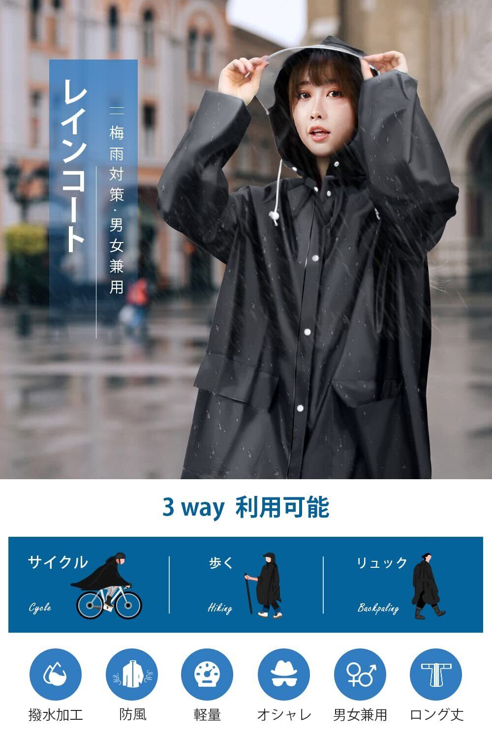 【男女兼用大きいサイズ】レインコートは膝下までカバーするロング丈、体をしっかり覆い、レインブーツを履けば足元まで濡れない、雨から全身を守ることができます。背中のスナップボタンを開けるとさらに余裕のある大きめサイズになり、リュックやバッグを背負ったままでもゆったりと着れます。自転車/バイクを乗る時にも、雨中での作業時にも邪魔せず、台風、梅雨季節に大活躍なレインコートです。