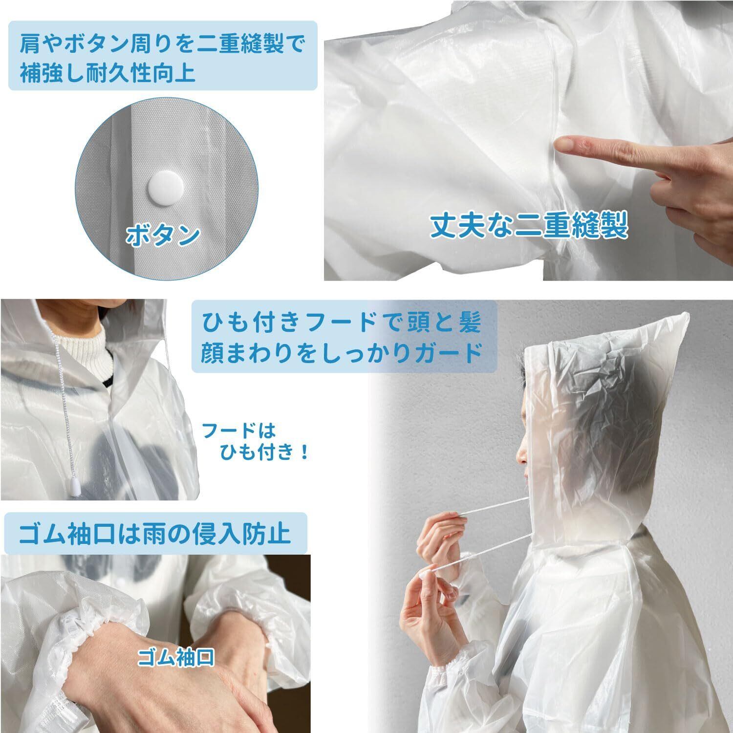 【新着商品】[Justart] 使い捨てレインコート レイン ポンチョ 1個 4個 10個 40個 フリーサイズ 128g 白 半透明 ひも付きフード ゴム袖口 男女兼用/アウトドア 自転車通勤 通学 フェス 台風 防災グッズ | 無意味ステッカー