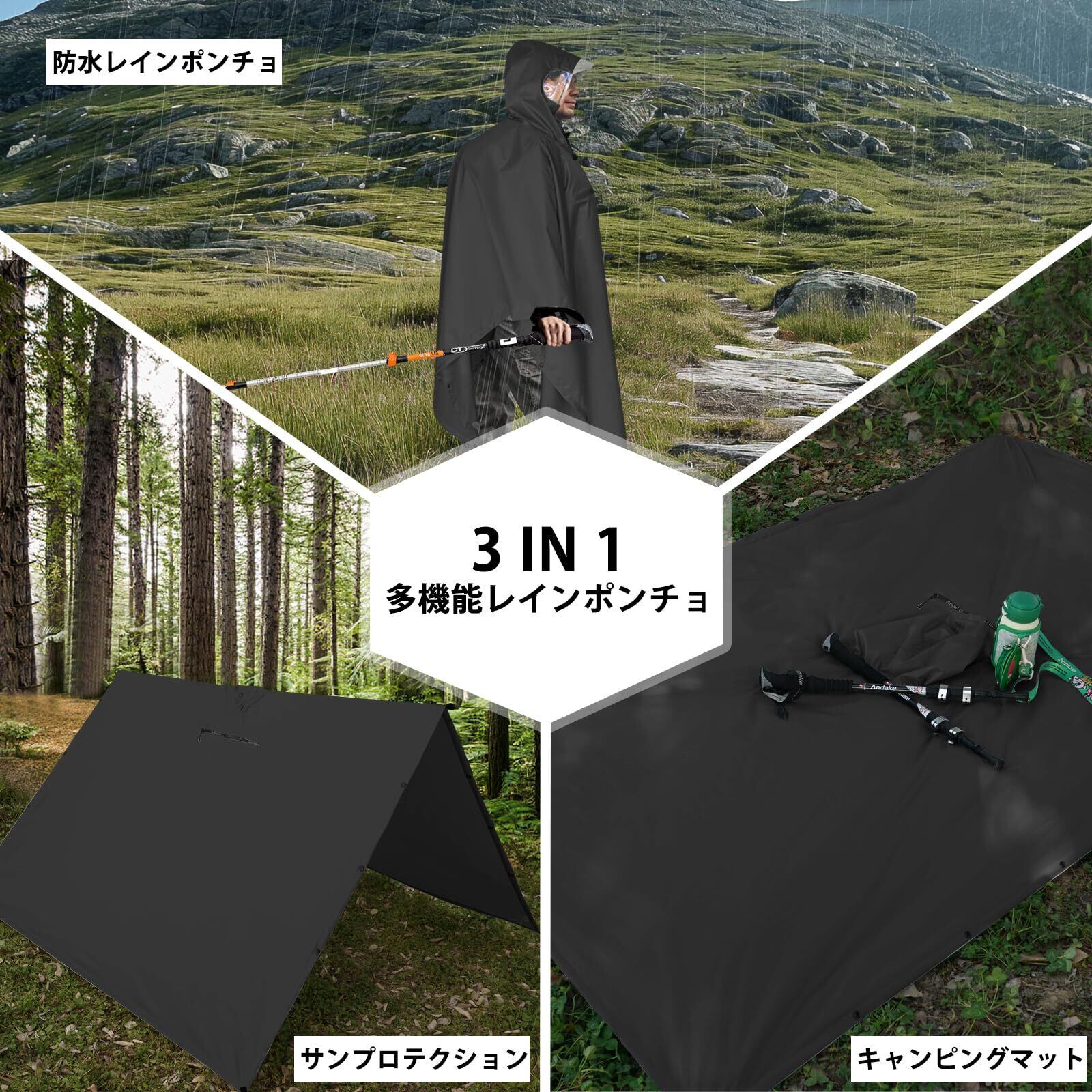 【高密度防風・防水素材で全天候対応】このレインポンチョは、高品質の210TポリエステルとPU防水コーティングを採用し、強力な防水性能を実現。約300gの超軽量設計で、防風性・耐摩耗性・耐久性に優れ、四季折々の雨や風からあなたを守ります。旅行やアウトドア活動に最適な相棒です!