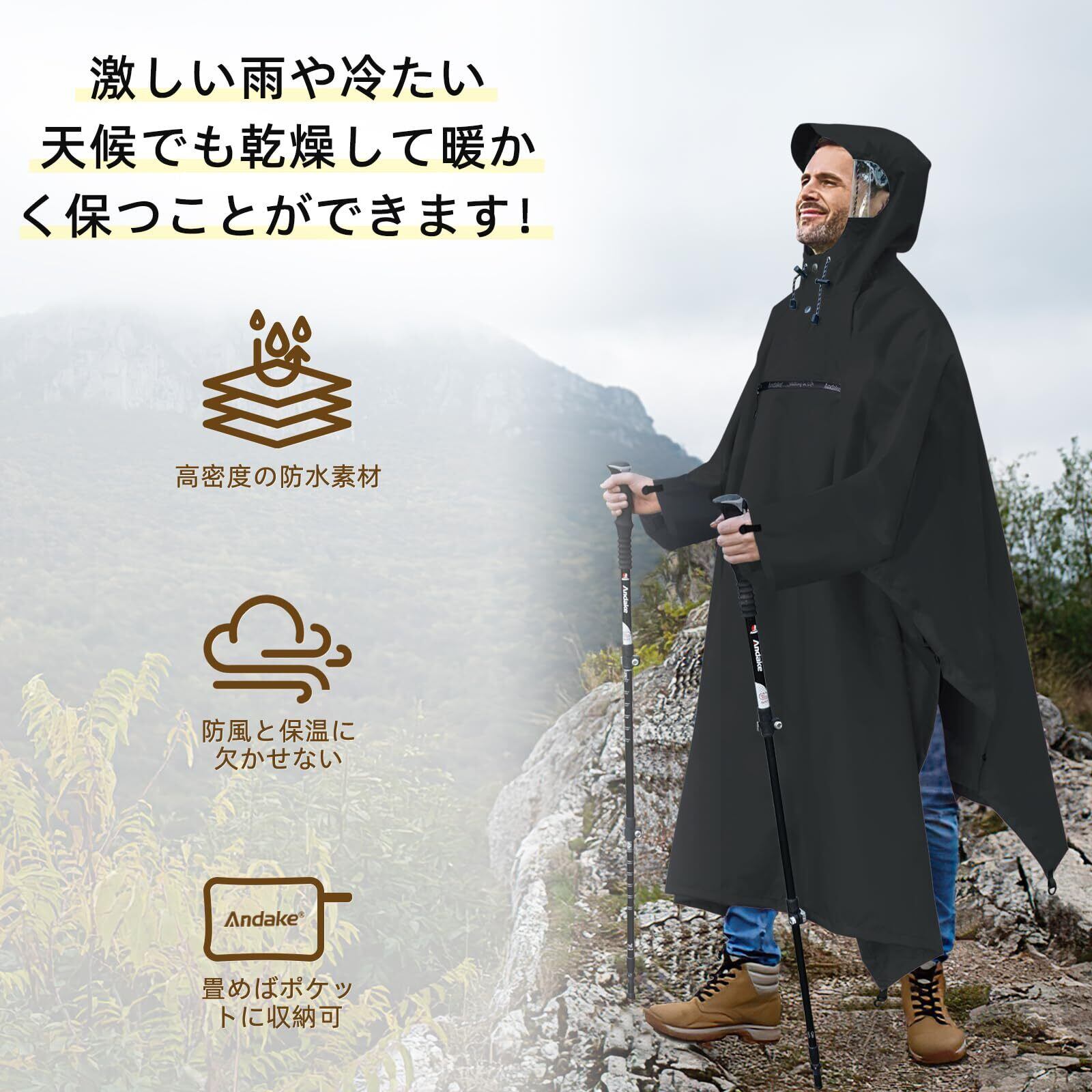 [Andake] レインコート 超軽量・防水 防風 レインウェア 透湿性 高密度ポリエステル耐久性のある雨具 男女兼用 通勤 アウトドア サイクリングに適しています 折りたたみ式レインコート 自転車(収納袋付き