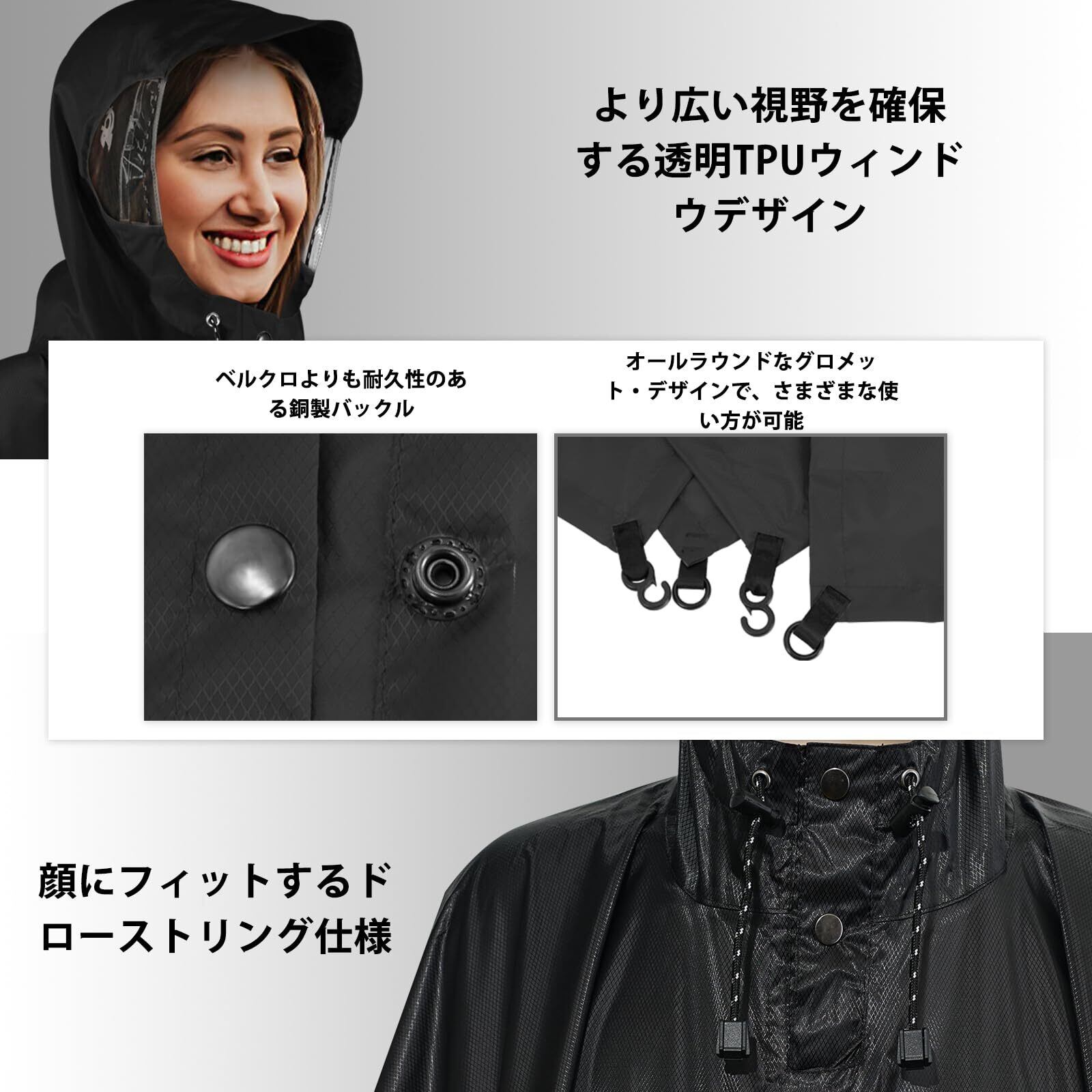 こんにちは!このレインコートは、忙しい毎日を快適に過ごしたい日本の皆様のためにデザインされました。軽量で持ち運びがとっても便利なうえ、防風・防水機能もバッチリ!高品質の防水素材を使っているので、雨の日でもずっと快適です。コンパクトに折りたたんでバッグにすっきり収納できるから、急な雨でも安心ですよ。風をしっかり防ぐので、春のそよ風や秋の肌寒い日にもぴったり。おしゃれなシルエットと豊富なカラーバリエーションで、雨の日でも気分は晴れやかに!通勤はもちろん、お出かけや旅行にも大活躍します。ぜひ、このレインコートで雨の日も楽しんでくださいね。
