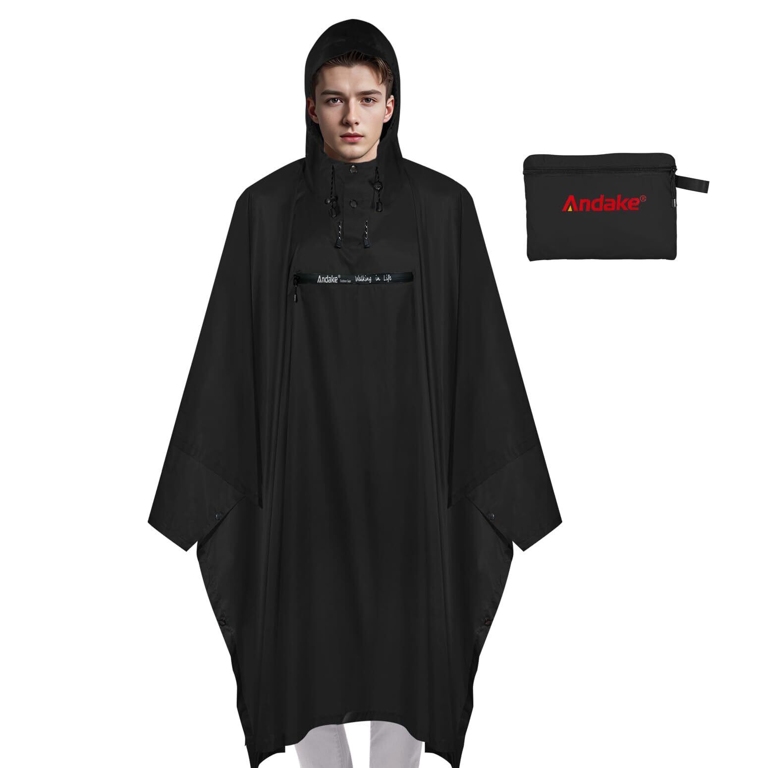 【在庫セール】[Andake] レインコート 超軽量・防水 防風 レインウェア 透湿性 高密度ポリエステル耐久性のある雨具 男女兼用 通勤 アウトドア サイクリングに適しています 折りたたみ式レインコート 自転車(収納袋付き | 無意味ステッカー