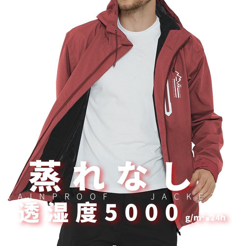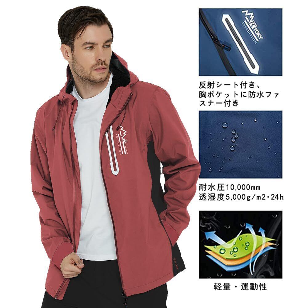 【防風・防水・防寒性】柔らかくてゆったりストレッチ素材を使い、さらっとした着心地に仕上げ、耐久性と防寒性に優れたメンズジャケットが登場で、耐水圧10,000mm、透湿度5,000g/m2・24hと、豪雨であっても完全に防ぎ不快感も無く快適に使えます。高い撥水力に加え、袖口は調節可能な絞り機能付きで、雨や雪、冷たい風の侵入をシャットアウトできます。