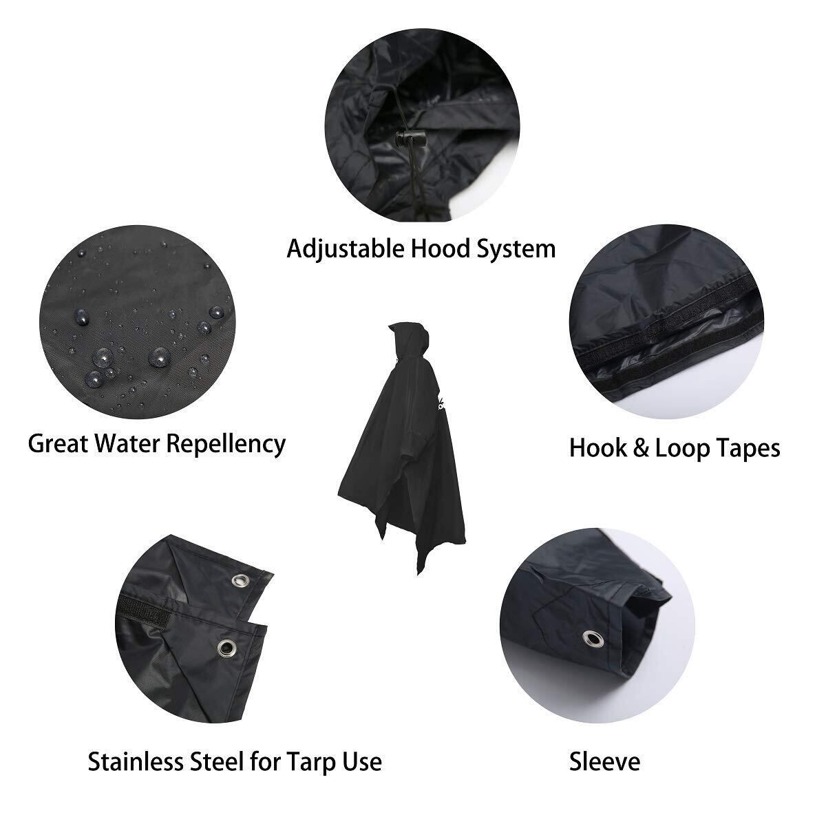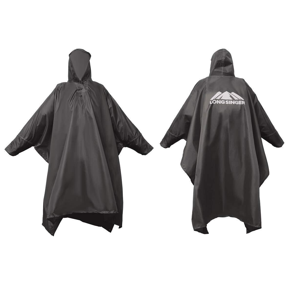 [longsinger] 防水軽量の再利用可能なレインポンチョ、多機能レインコート用の調節可能なフードとアームを備え、ハイキング、釣り、狩猟、アウトドア、クライミング、キャンプに適しており