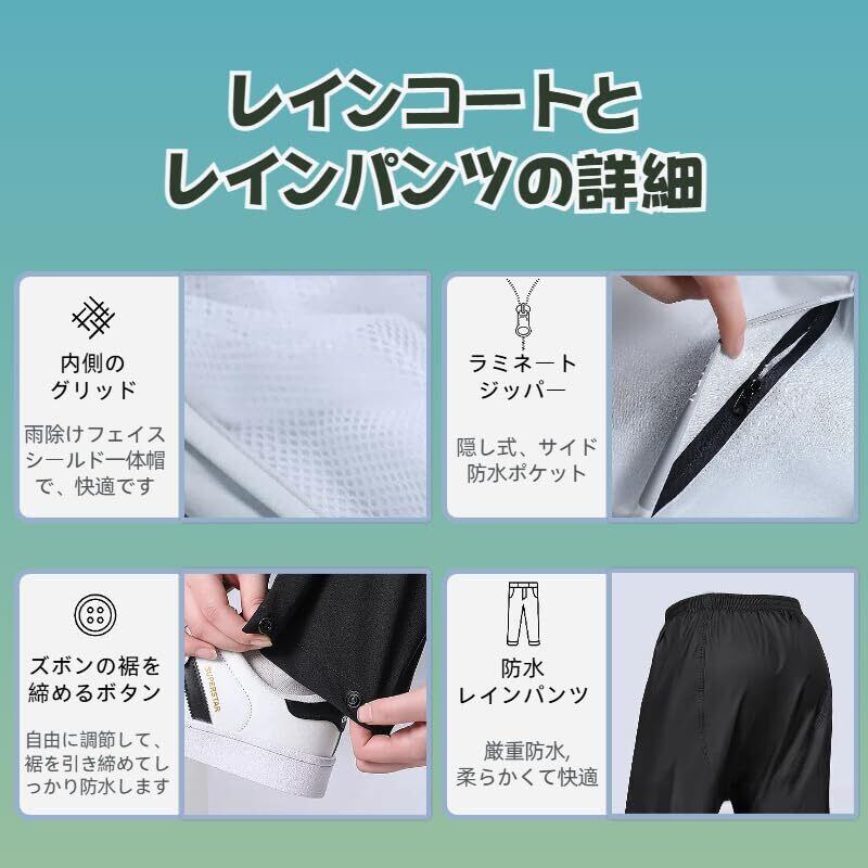 [WhaRainle] 【2025年のNEWスタイル】レインウェア 上下セット 自転車 レインコートメンズ レディース 雨具 バイク レインポンチョ【オールインワン設計·収納袋付き】梅雨対策 バイク/自転車/通学/通勤用 男女兼用 レインウェア