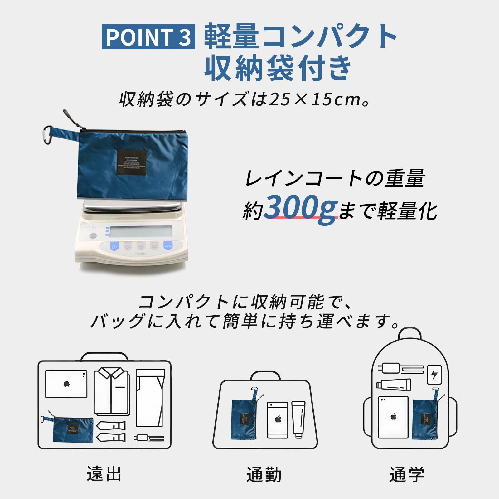 【高品質&超軽量】 レインポンチョは高品質のポリエステル素材を使用し、表面には撥水加工、速乾性があり、着心地が良いです。重量はわずか280gで、専用収納袋付きで、リュックや通勤バッグにも簡単に収納可能です。