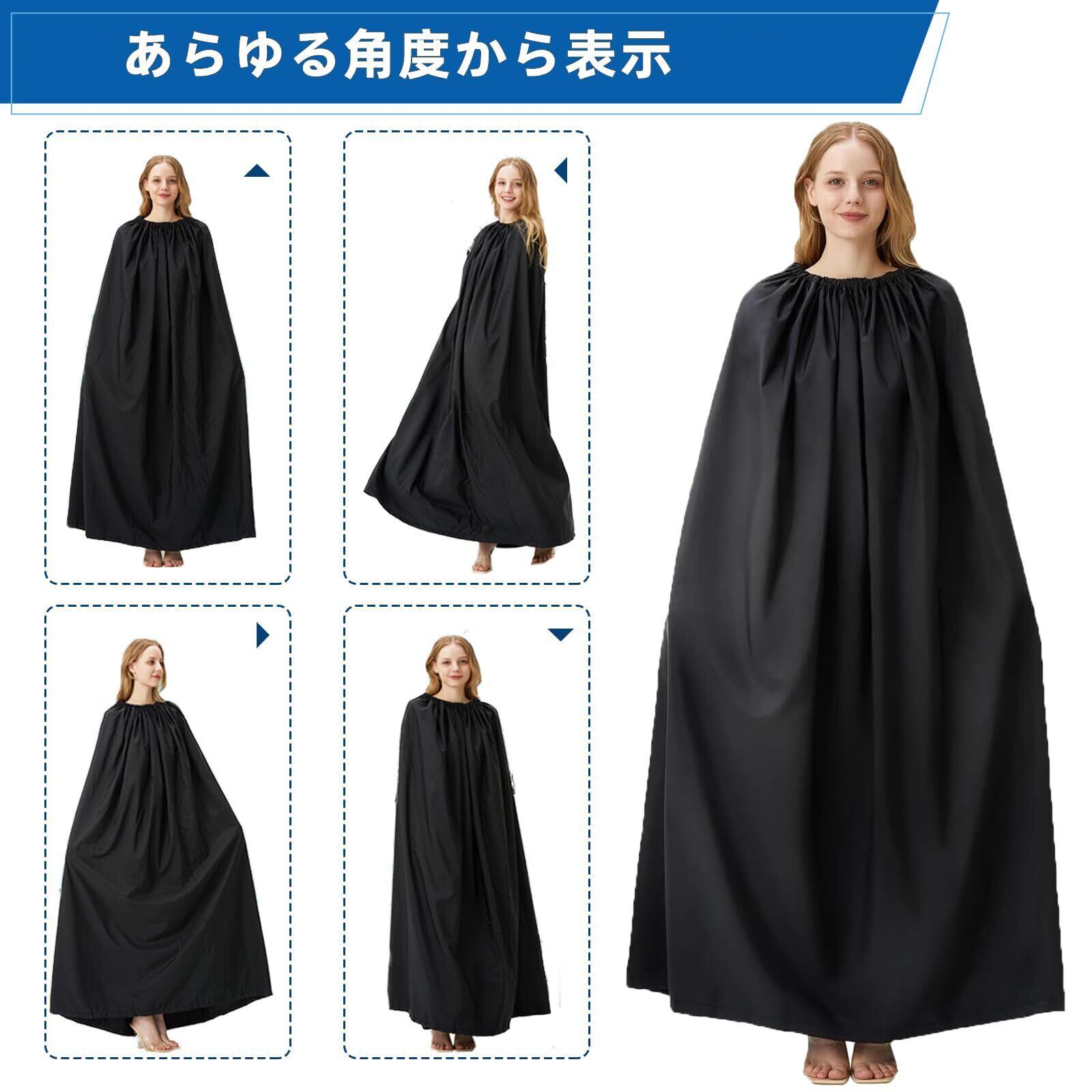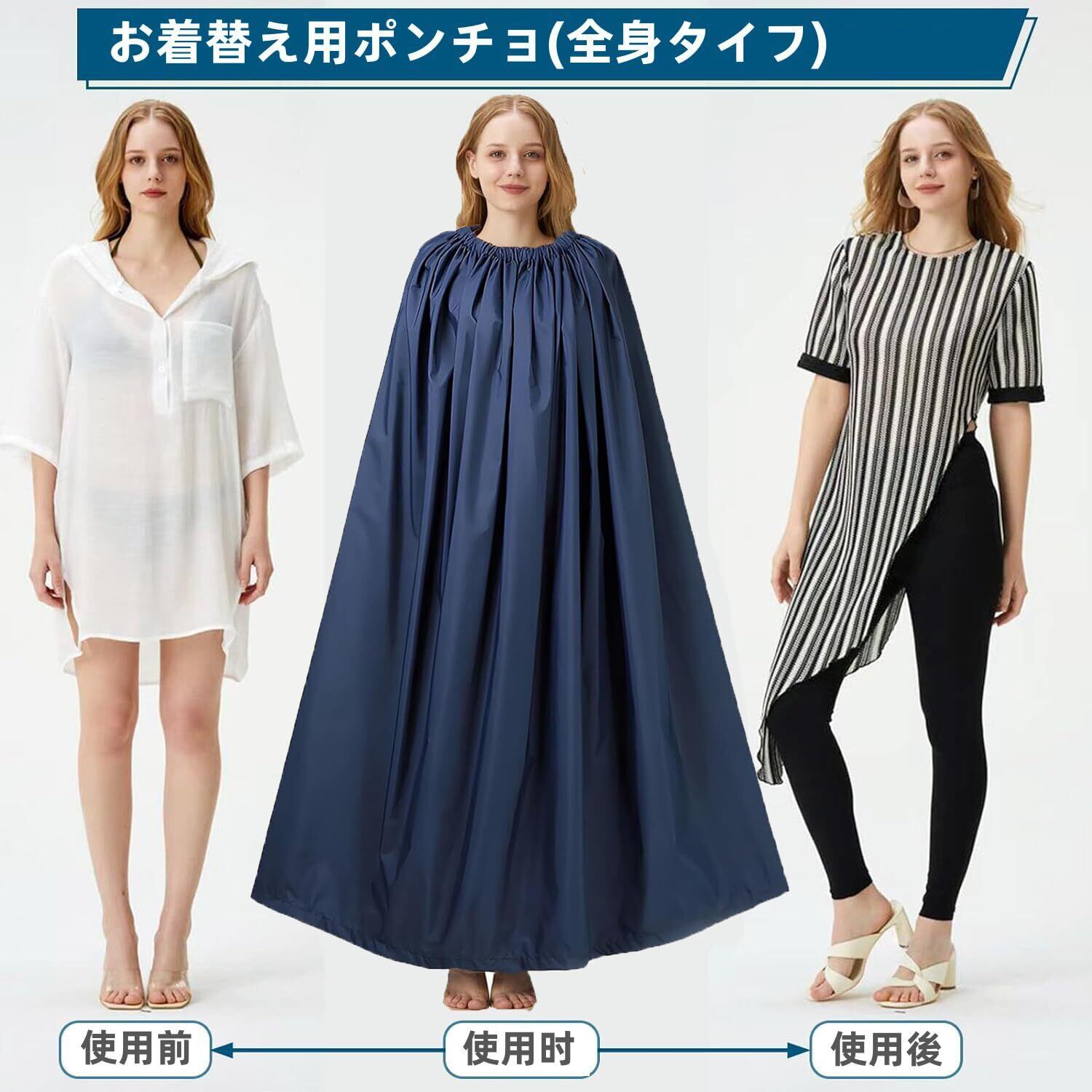 【サイズ&広い空間】この目かくし用ポンチョには3つのサイズがあります。全長120cm(推奨身長 145cm-160cm)、全長130cm(推奨身長 160cm-170cm)、全長140cm(推奨身長 170cm-185cm)、男女兼用。広々と着替えが出来ますよ小柄女性から大柄男性まで網羅着替え空間を最大化!