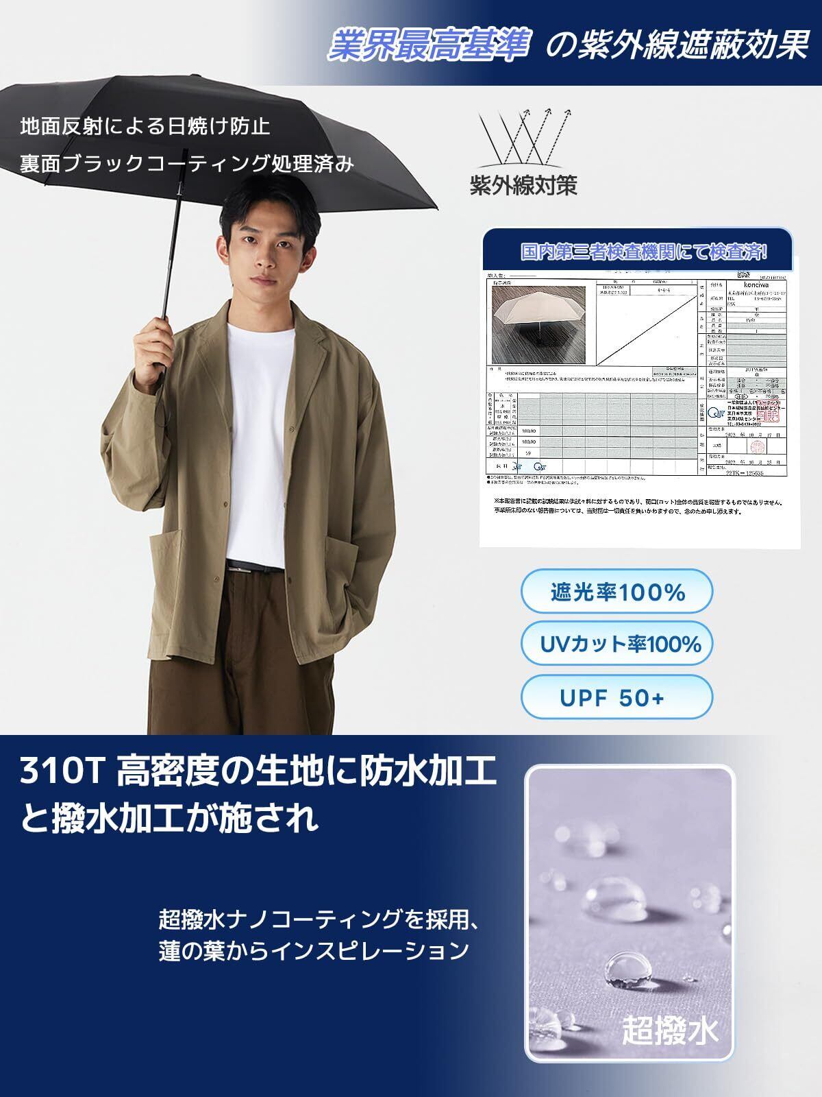 konciwa 日傘 UVカット率100% 晴雨兼用【飛び出し防止安全設計】 折りたたみ傘 大きいサイズ100cm 軽量230g 完全遮光認証 ワンタッチ 自動開閉 折り畳み日傘 遮光遮熱 熱中症対策 肌を守る 折りたたみ日傘 耐風頑丈 携帯便利 超撥水日傘兼用雨傘 レディース/メンズ/子供/大人兼用