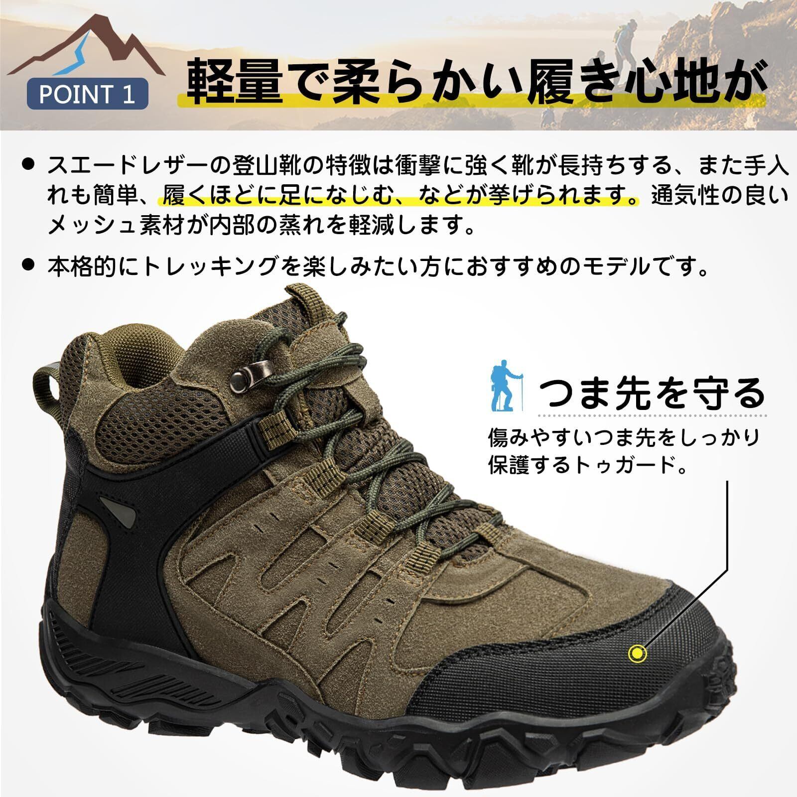 [SOARHOPE] トレッキングシューズ 登山 靴 メンズ レディース 登山シューズ アウトドア靴 山登り 靴 山歩き ミドルカット 轻量 防滑 初心者 おしゃれ