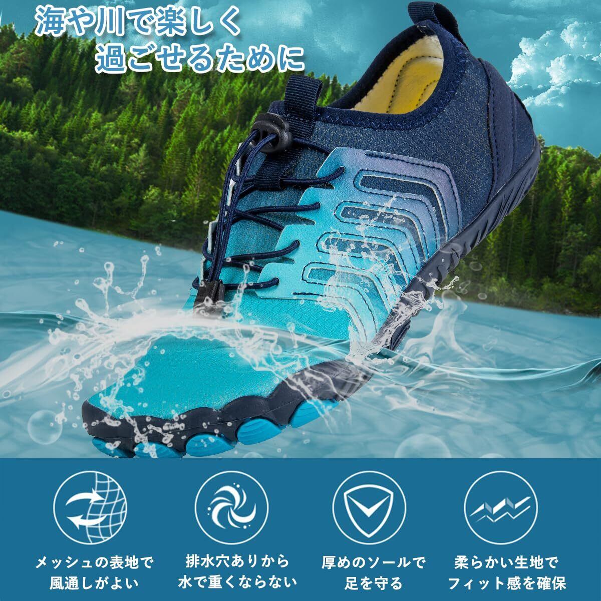 【滑り止め効果】すべりやすい水面でも転ぶ心配がない滑りにくいウォーターシューズです。 また、耐久性、耐摩耗性に優れ、長くご愛用いただけます
