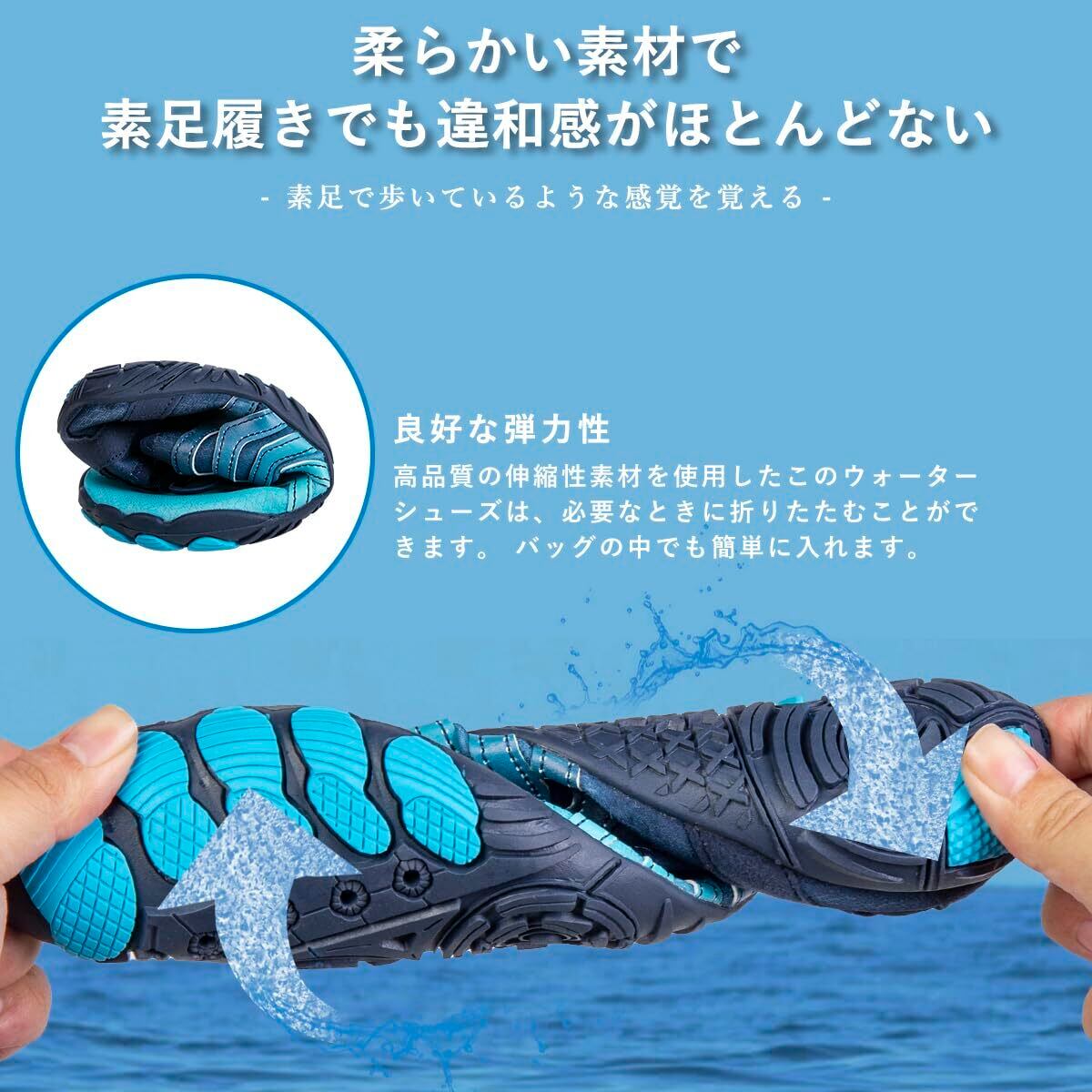 【軽量で柔軟】このウォーターシューズは、軽量設計で、柔軟性があり、折りたたむことができるので、長く快適に使用することができます