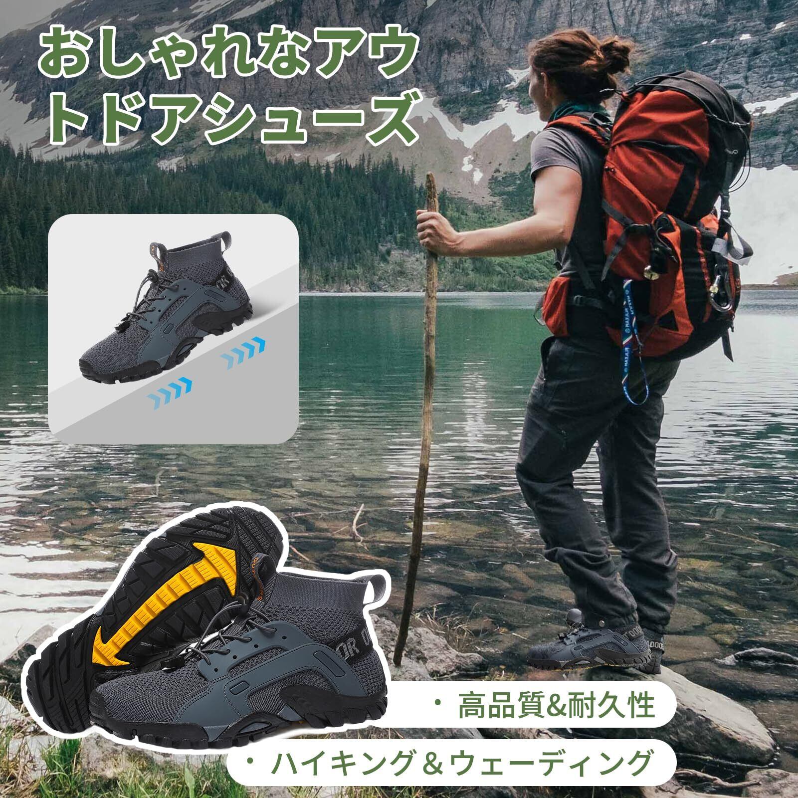 アウトドアでのトレッキングや川遊びに適ないサイズのメンズ用溯溪シューズです足を一歩踏み入れるだけで水中でもしっかりとグリップを保ちます快適なハイキング体験をお楽しみください
