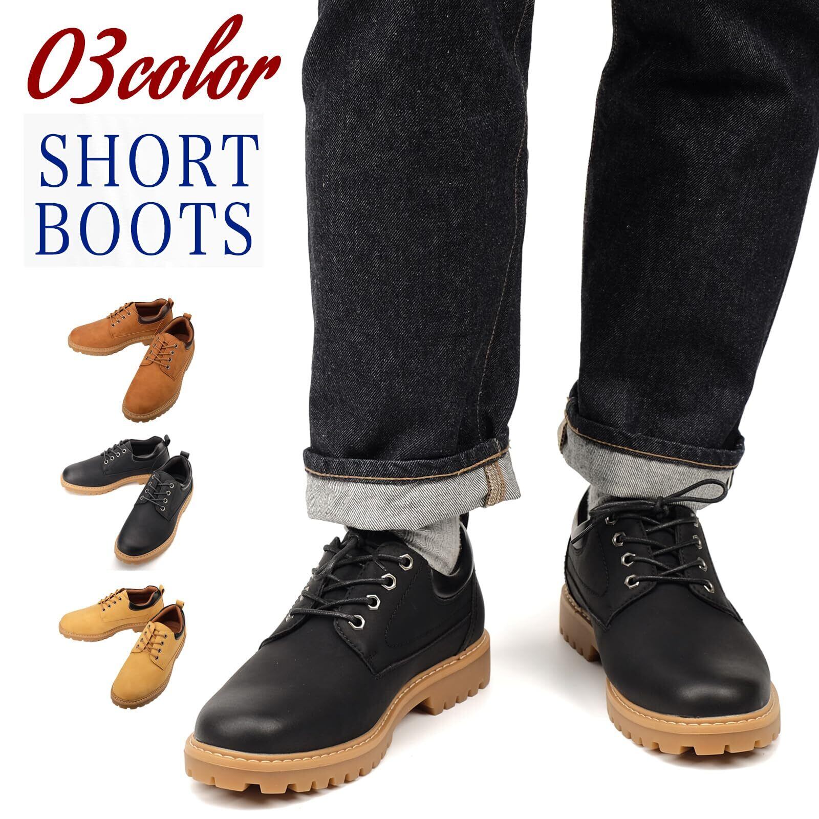 [KIXSTAR] カジュアルシューズ メンズ ワークブーツ ローカット ショート イエローブーツ マウンテンブーツ アウトドア ファッション シューズ 靴 厚底 レースアップ 幅広 防滑底 オールシーズン シンプル キャンプ 男 紳士 軽量 多用途