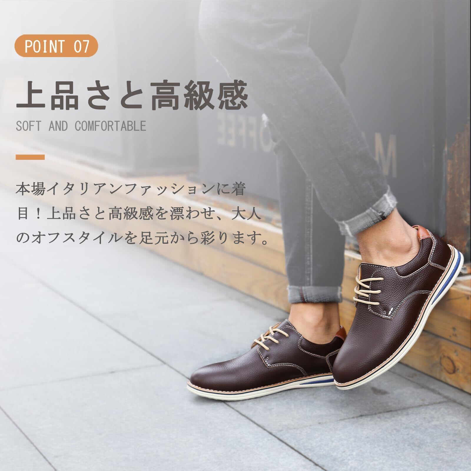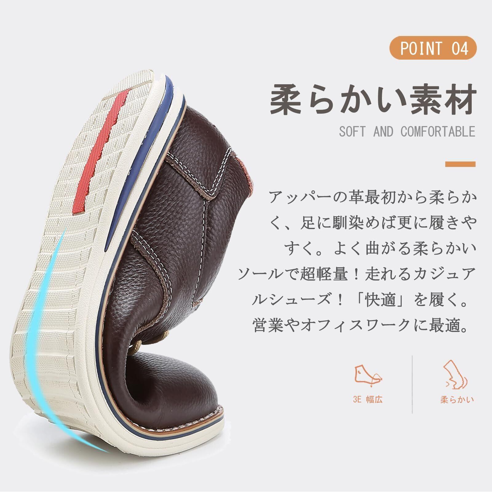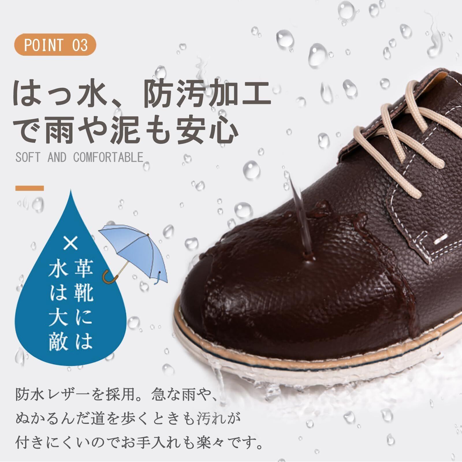 【高品質の第一層牛革】アッパーは上質な牛革で仕上げられ、外観、質感、屈折性、通気性も優れて、柔らかく繊細な感触が得られ、快適な履き心地を提供します。天候が変化しやすい季節は、優れた快適性はそのままに防水機能をプラスした「雨天対応モデル」が好評。