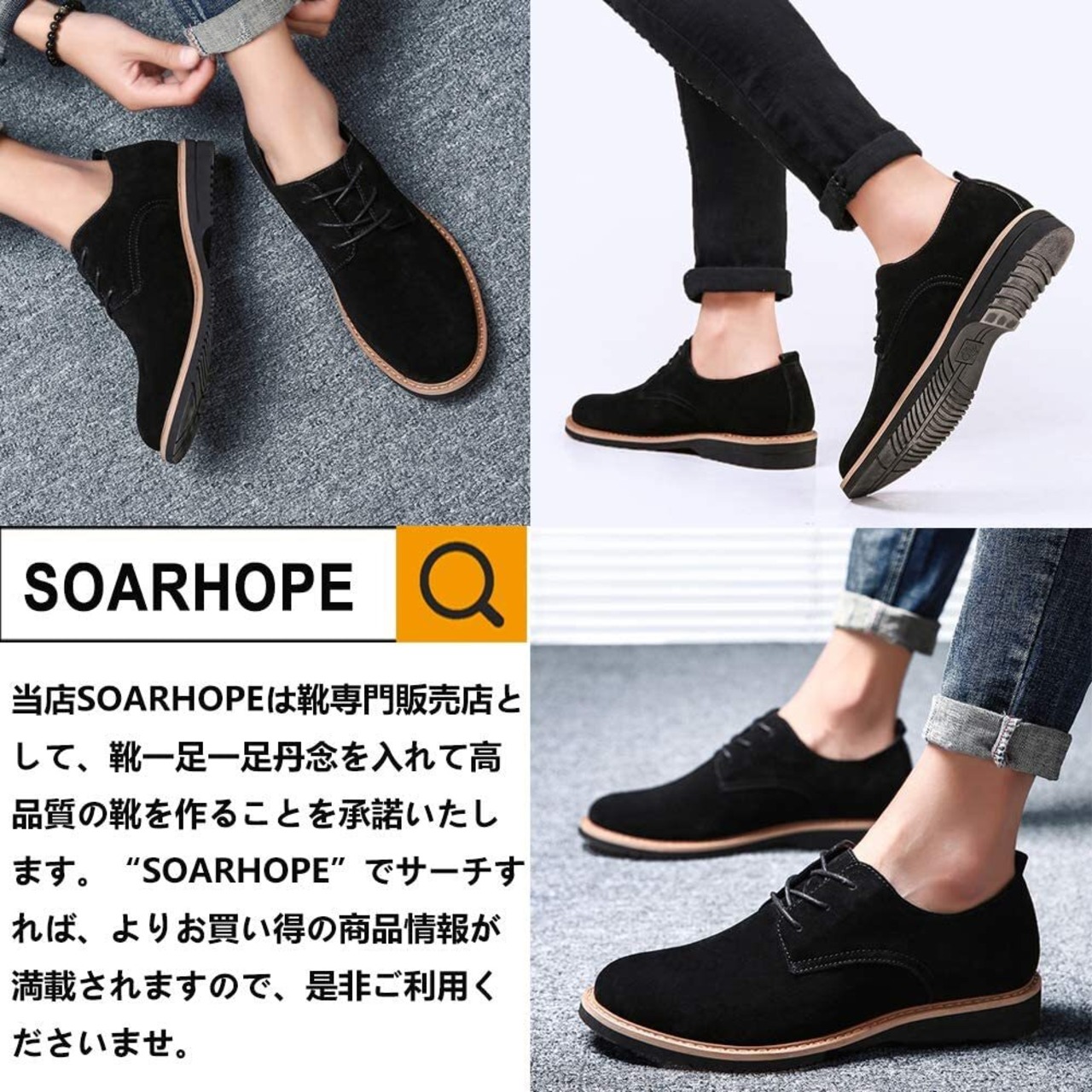 【特価商品】[SOARHOPE] メンズ 本革 スエード 靴 カジュアル スウェード シューズ 紳士靴 レースアップシューズ キャンバスシューズ デッキシューズ ビジネスカジュアル オフィスカジュアル おしゃれ 通勤 | 無意味ステッカー