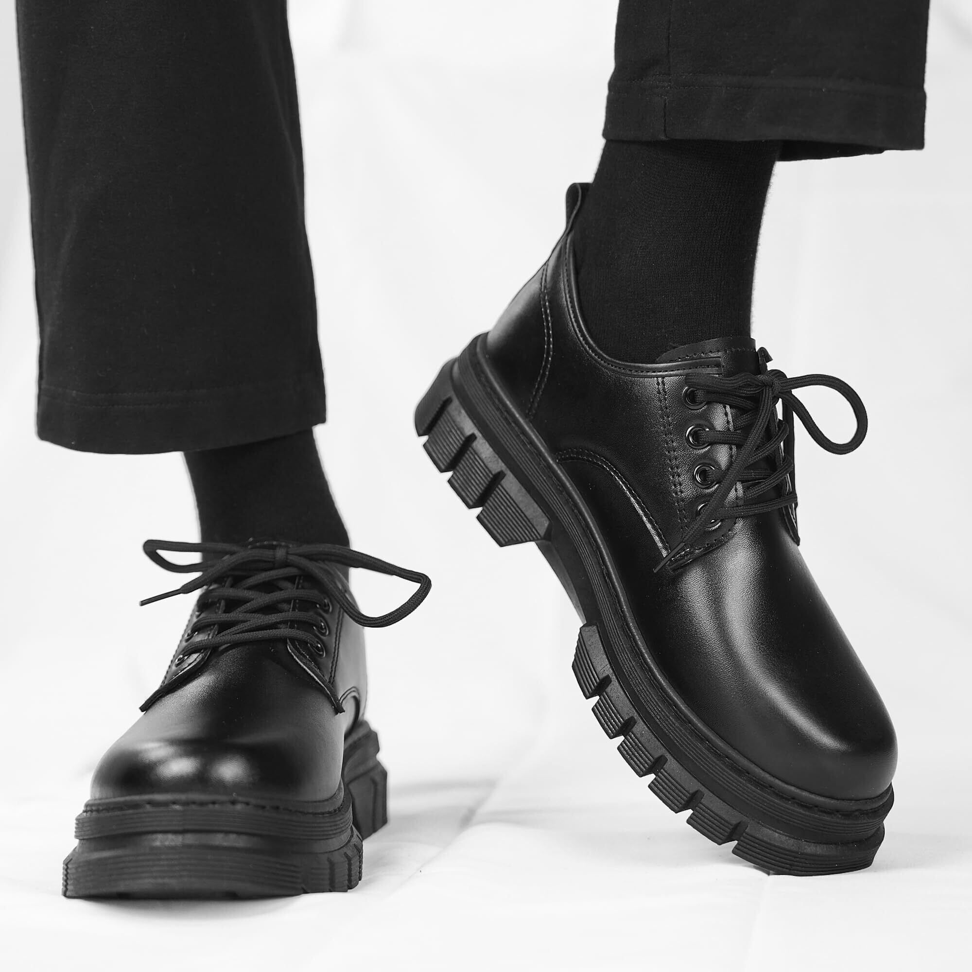 [YCA誉诚の家] シークレットシューズ メンズ 厚底4.5cm レースアップ 革靴 防水 防滑 軽量 身長アップ 紳士靴 フォーマル カジュアル 黒 24.5cm~27.0cm