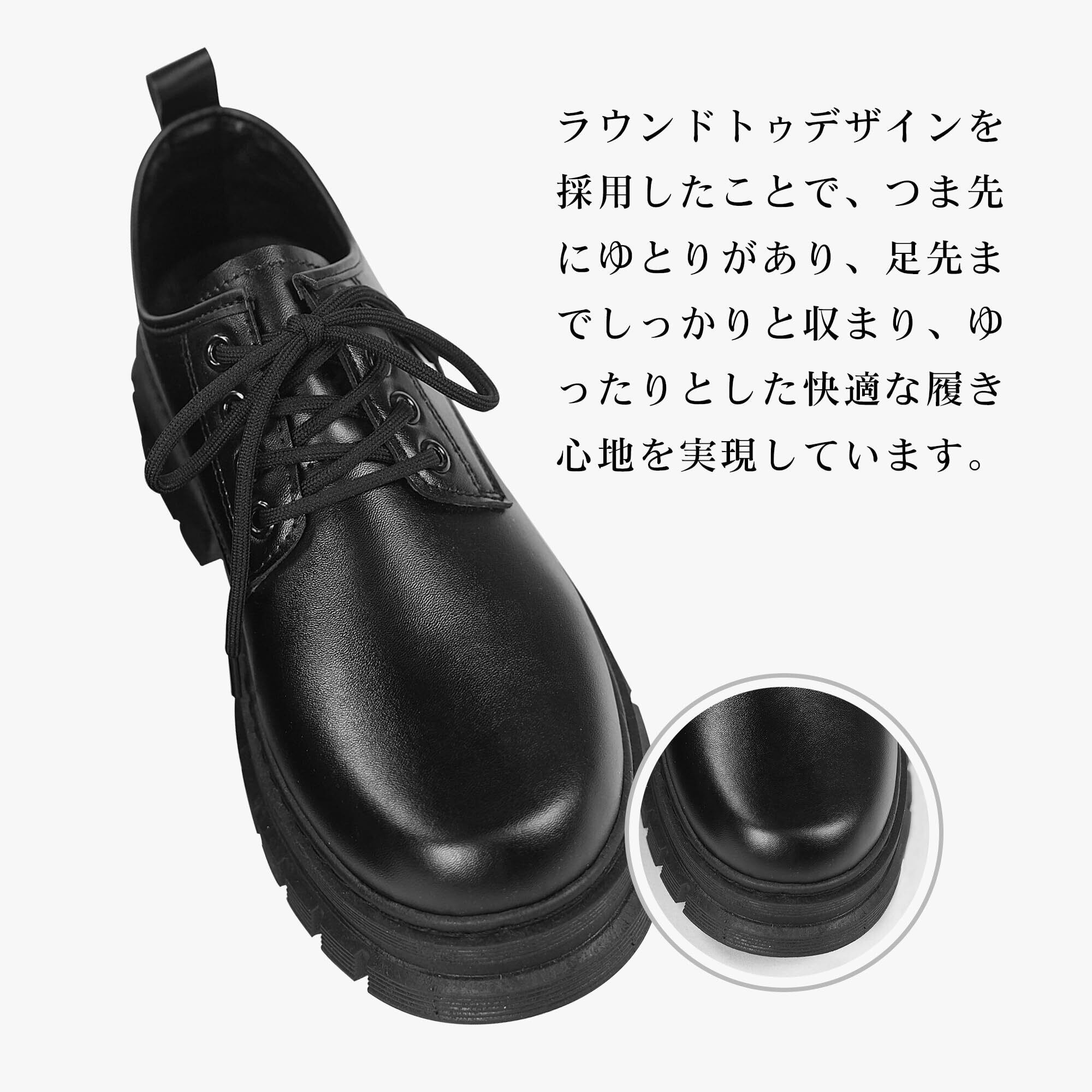 【4.5cm厚底で自然なスタイルアップ】 足元に4.5cmの高さを加えることで、さりげなくスタイルアップ。厚底設計により、身長を自然に高く見せ、同時に足元に存在感をプラスします。毎日の通勤やお出かけにも最適なシークレットシューズです。