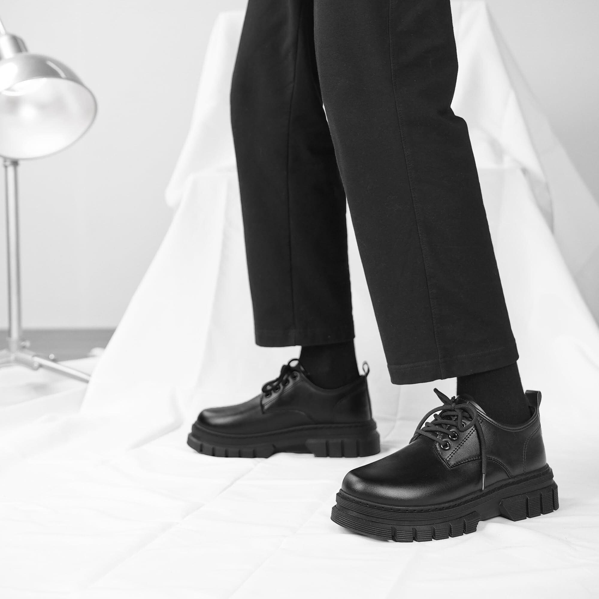【在庫処分】[YCA誉诚の家] シークレットシューズ メンズ 厚底4.5cm レースアップ 革靴 防水 防滑 軽量 身長アップ 紳士靴 フォーマル カジュアル 黒 24.5cm~27.0cm | 無意味ステッカー