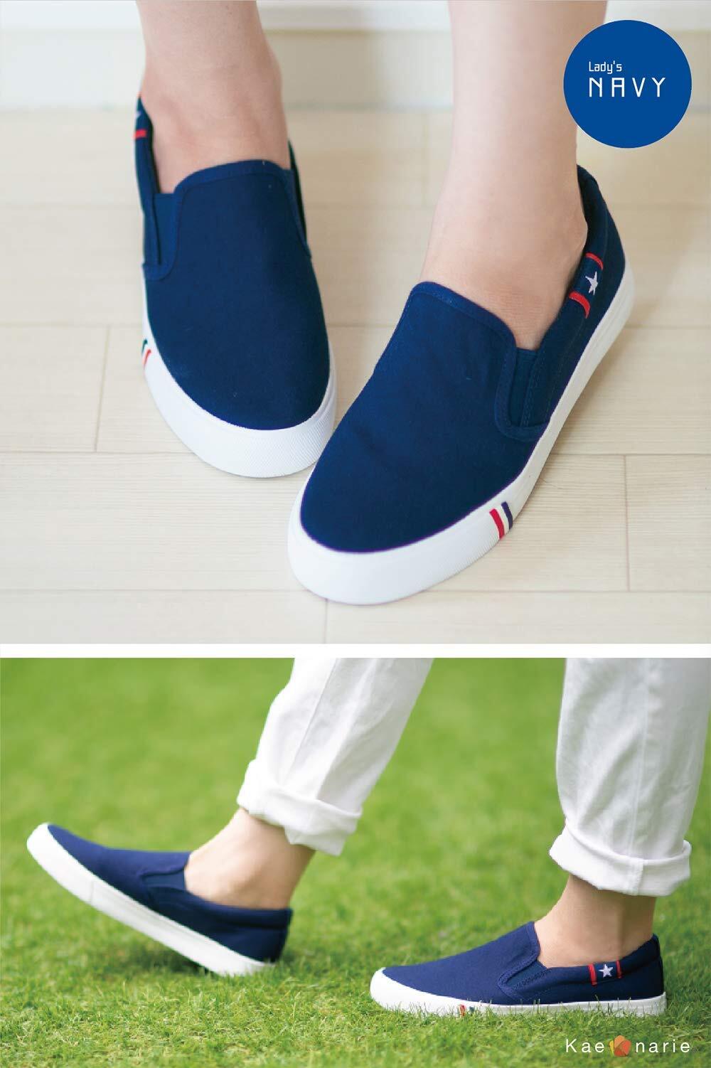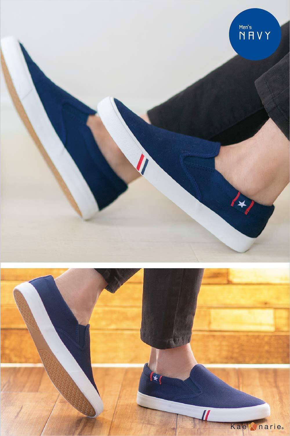 [Kaenarie] スリッポン スニーカー メンズ レディース デッキシューズ ワンポイント 星柄 おしゃれ 黒 白 キャンバス カジュアル 旅行 室内 男女 入院用 バイト