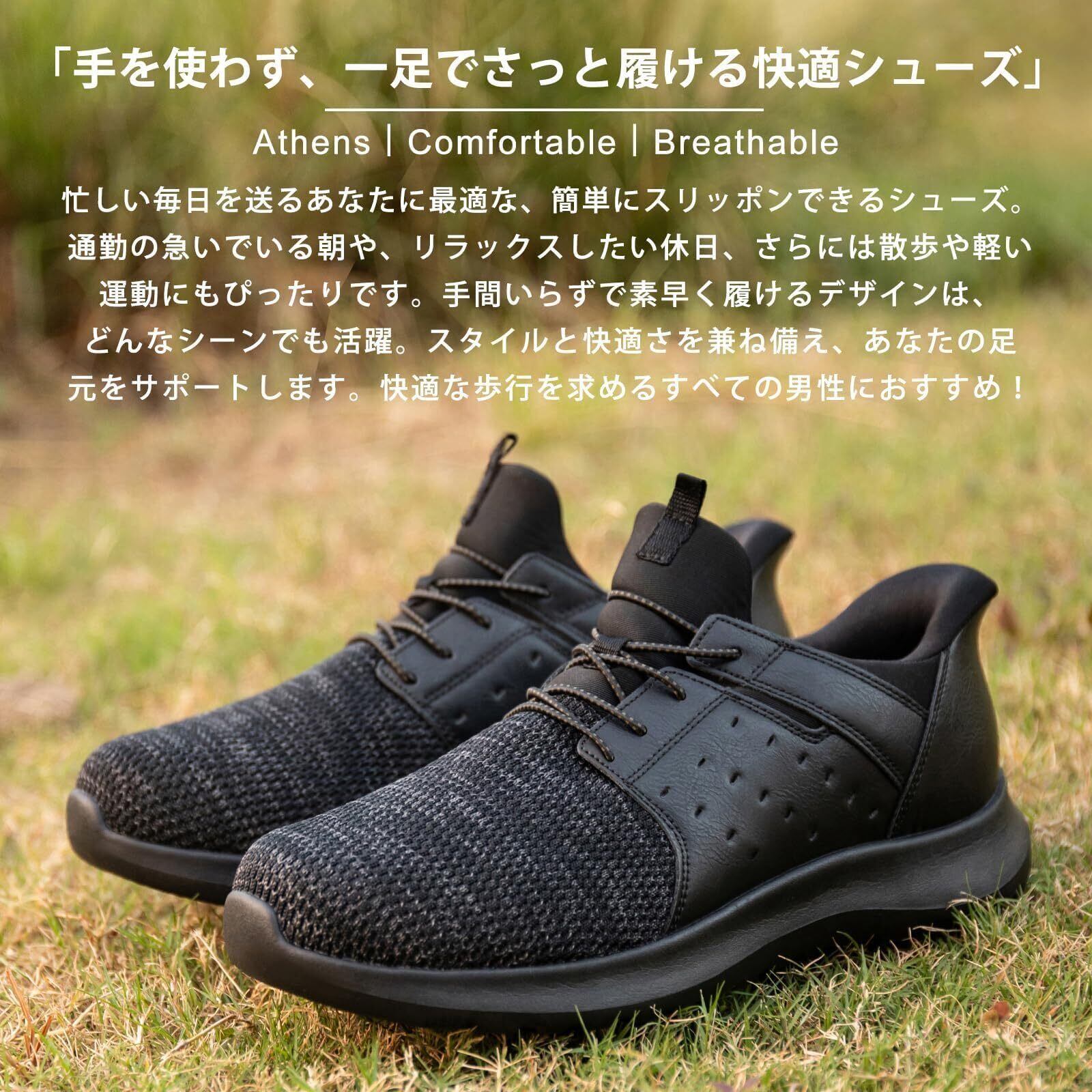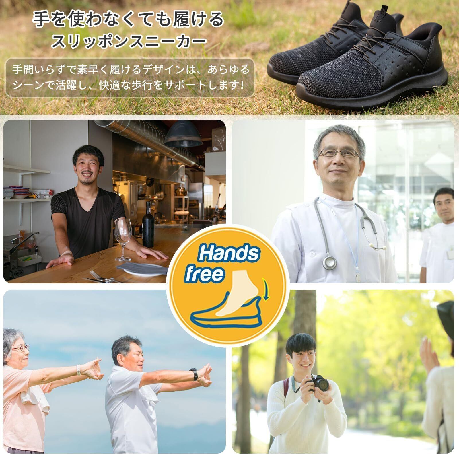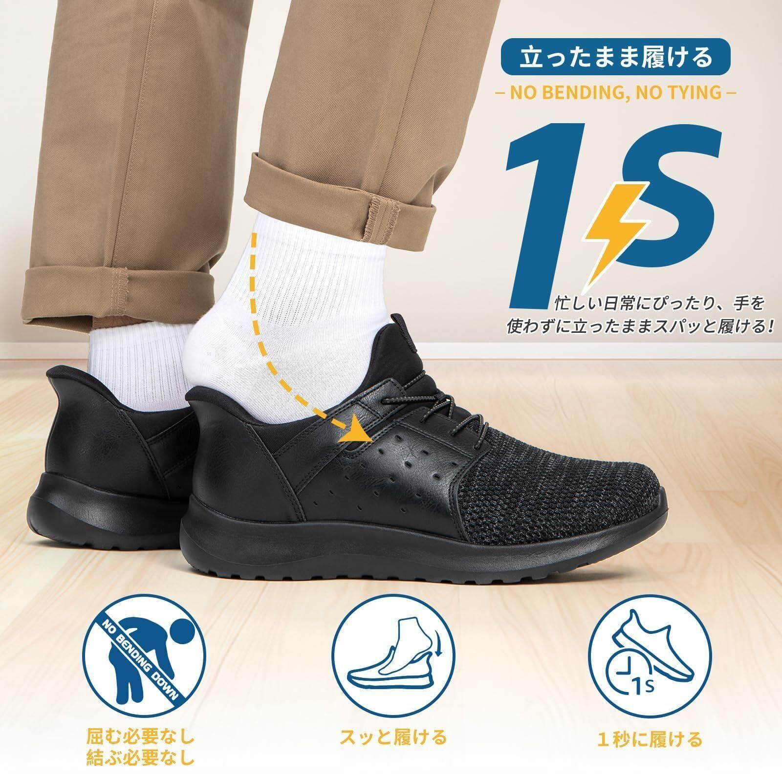 【立ったまま簡単に履ける手を使わない設計】この靴ベラいらずの靴は手を使わず、立ったまま1秒で履けるため、腰をかがめる必要がありません。忙しい朝や外出前の準備が楽々。通勤や買い物、旅行だけでなく、シューズを脱ぎ履きすることが多い老年人の散歩にも最適です。家族への思いやりとして、父の日の贈り物としてもぴったりの一足です。