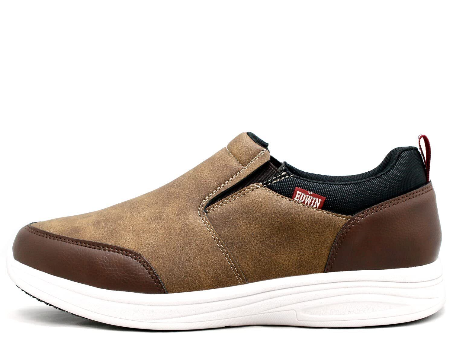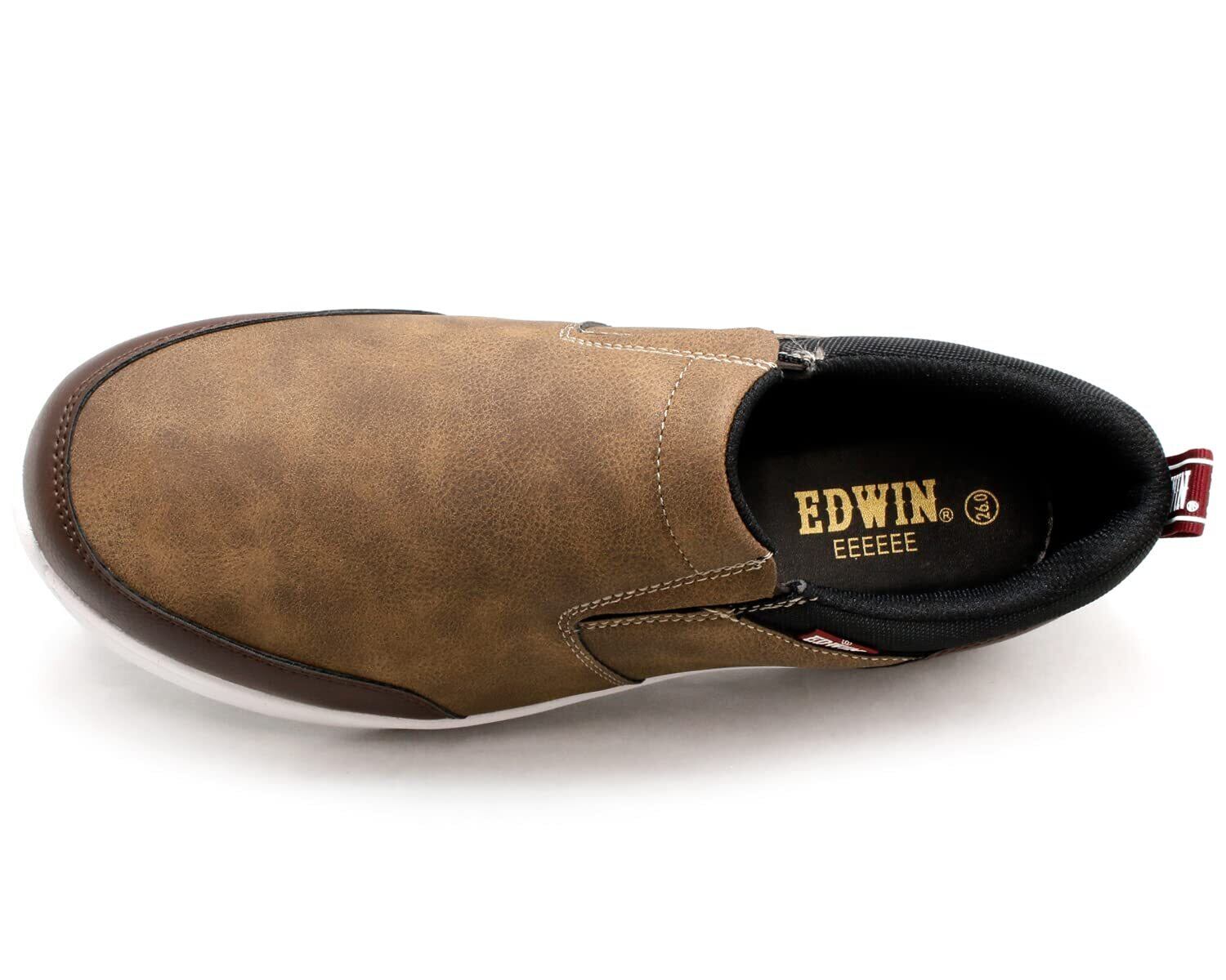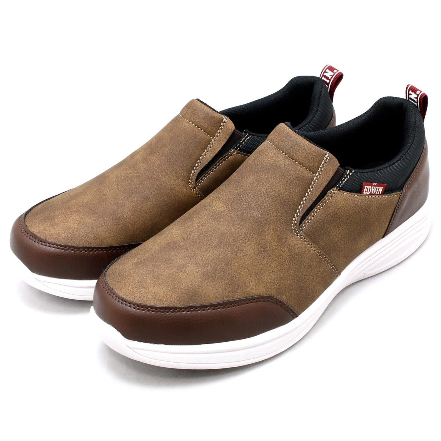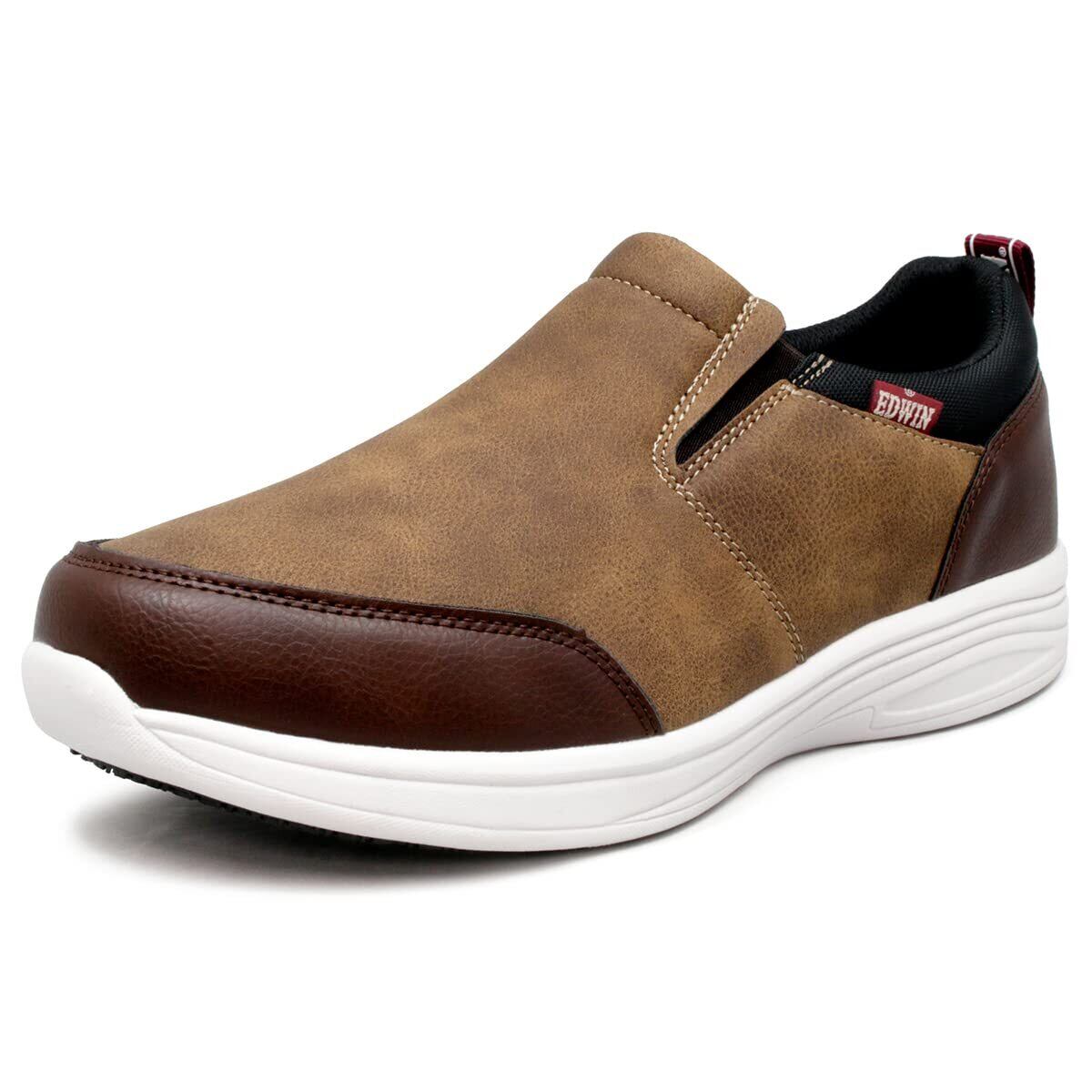 [エドウィン] スリッポン スニーカー メンズ 6E 幅広 甲高 防水 軽量 耐滑底 PUレザー 紐なし ウォーキングシューズ edm72