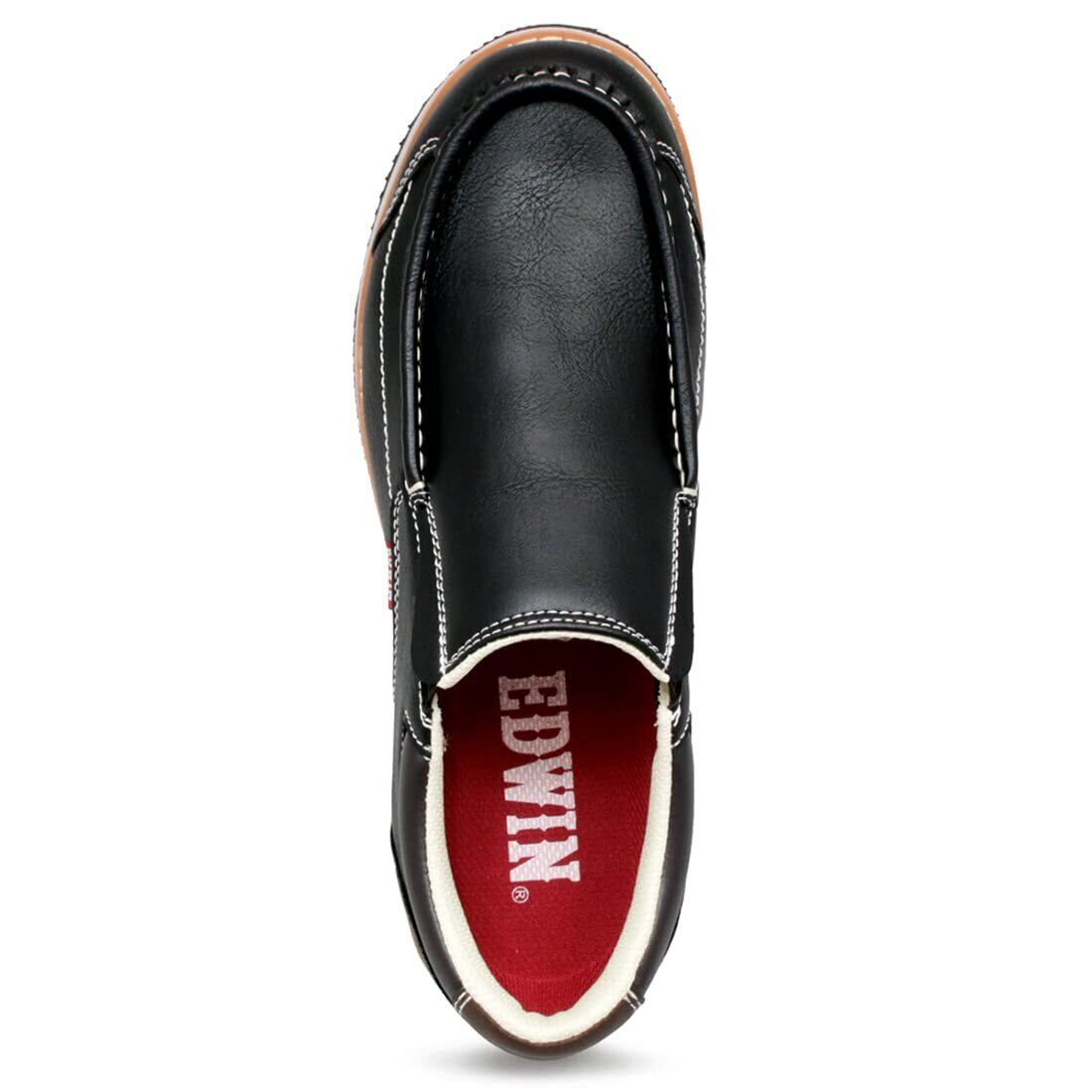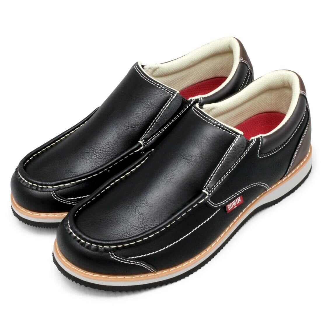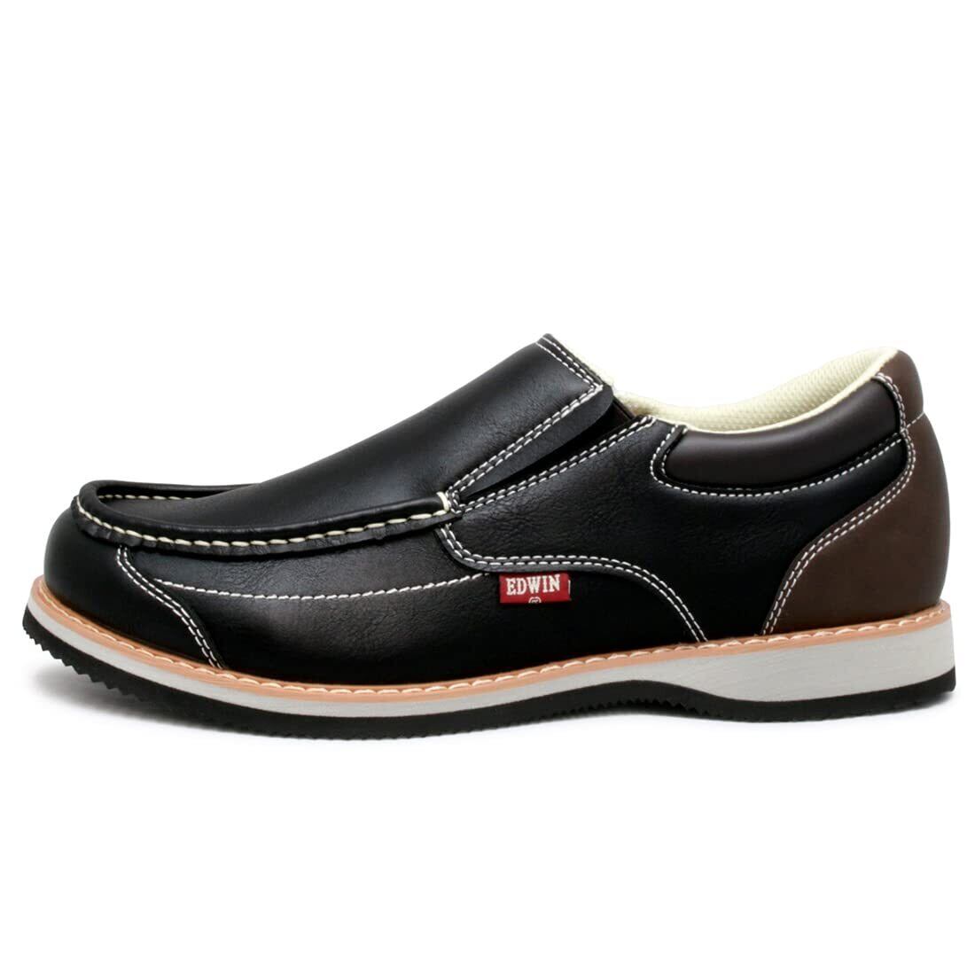 [エドウィン] スリッポン メンズ 革靴 スニーカー カジュアルシューズ 3E 紐なし ローファー 軽量 PUレザー 上質素材 柔らかい おしゃれ 紳士靴 黒 茶 edm9808