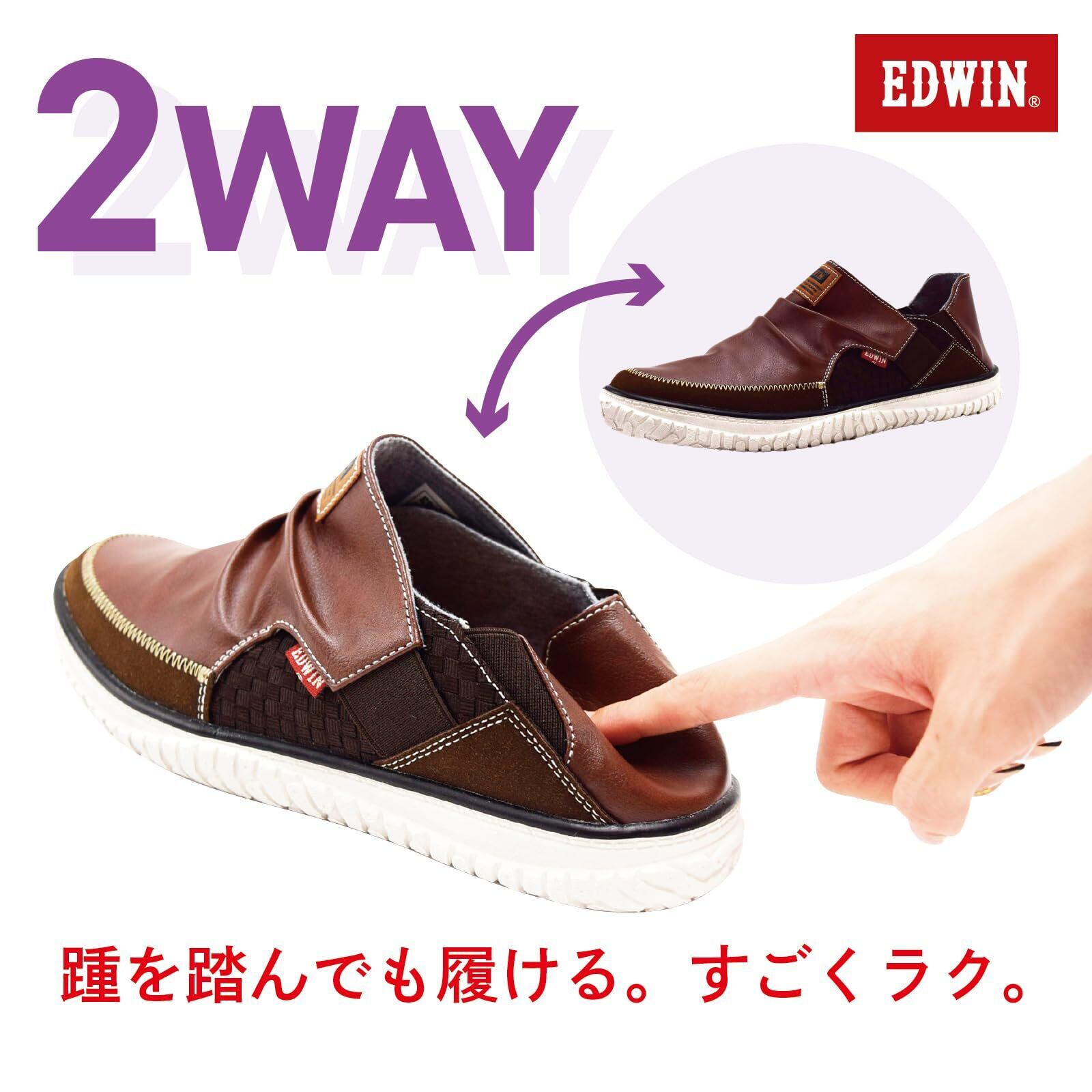 [エドウィン] スニーカーバブーシュ かかと踏み スリッポン 2WAYスニーカー おしゃれ かっこいい カジュアル 合わせやすい 軽量 幅広 3E ふかふかクッション 滑りにくい 防滑 メンズ