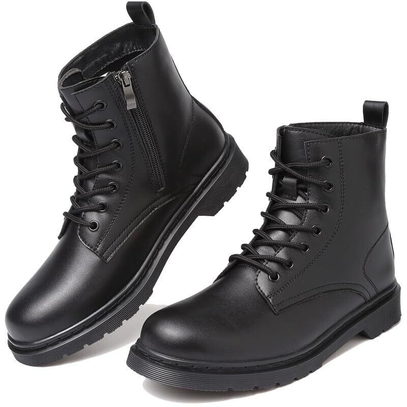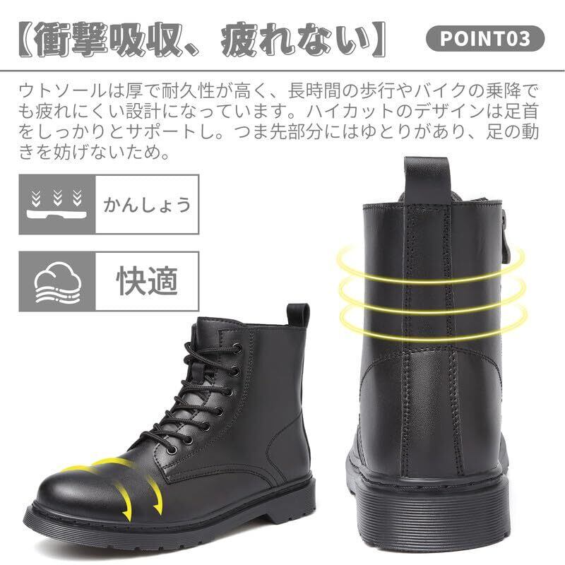 [Hanani] ブーツ メンズ バイク ブーツ サイドジップ ハイカット ショートブーツ 厚底 ブーツ 防水 秋 冬用 ワークブーツ エンジニアブーツ ライディングシューズ レースアップブーツ 黒 アンクルブーツ boots for men