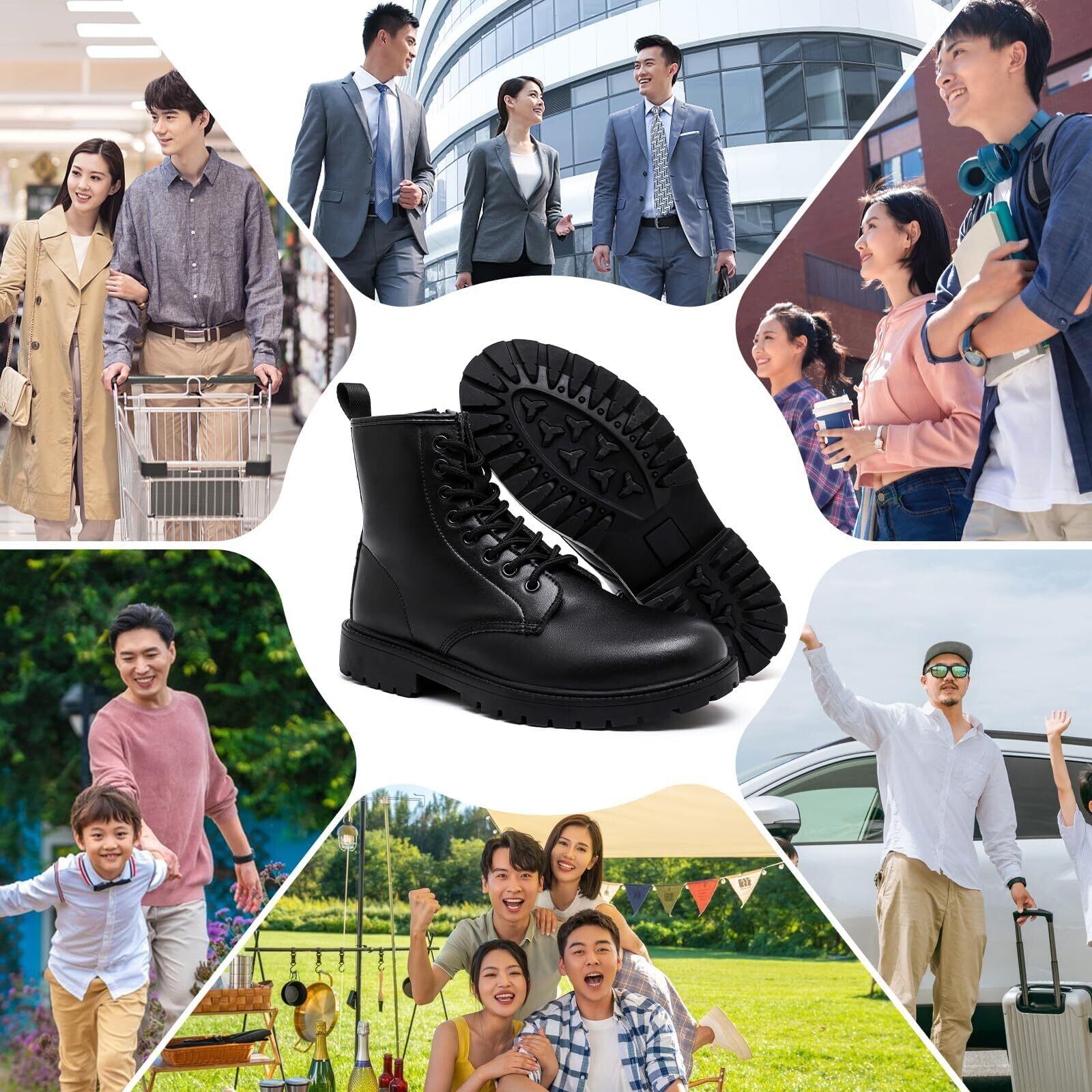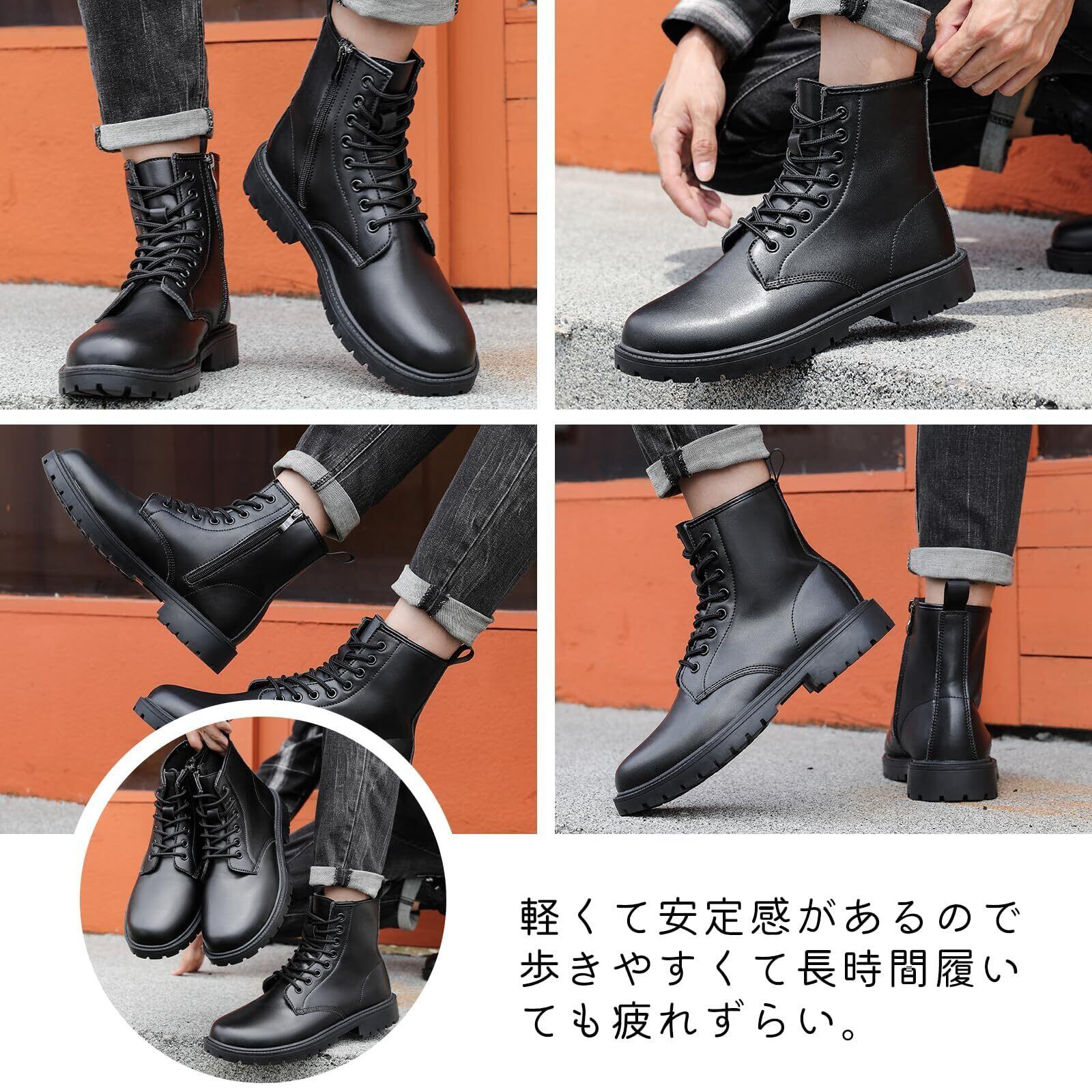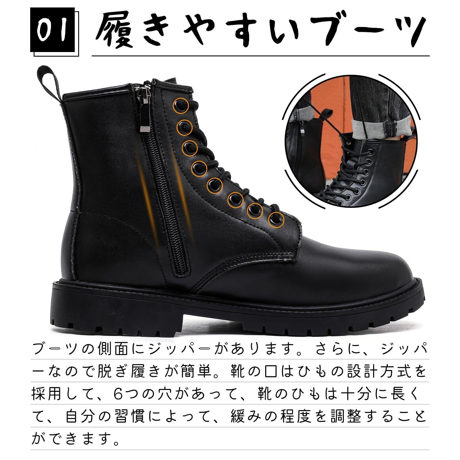 [Hanani] ブーツ メンズ サイドジッパー ショートブーツ ハイカット 厚底 黒 秋冬用 Boots for men