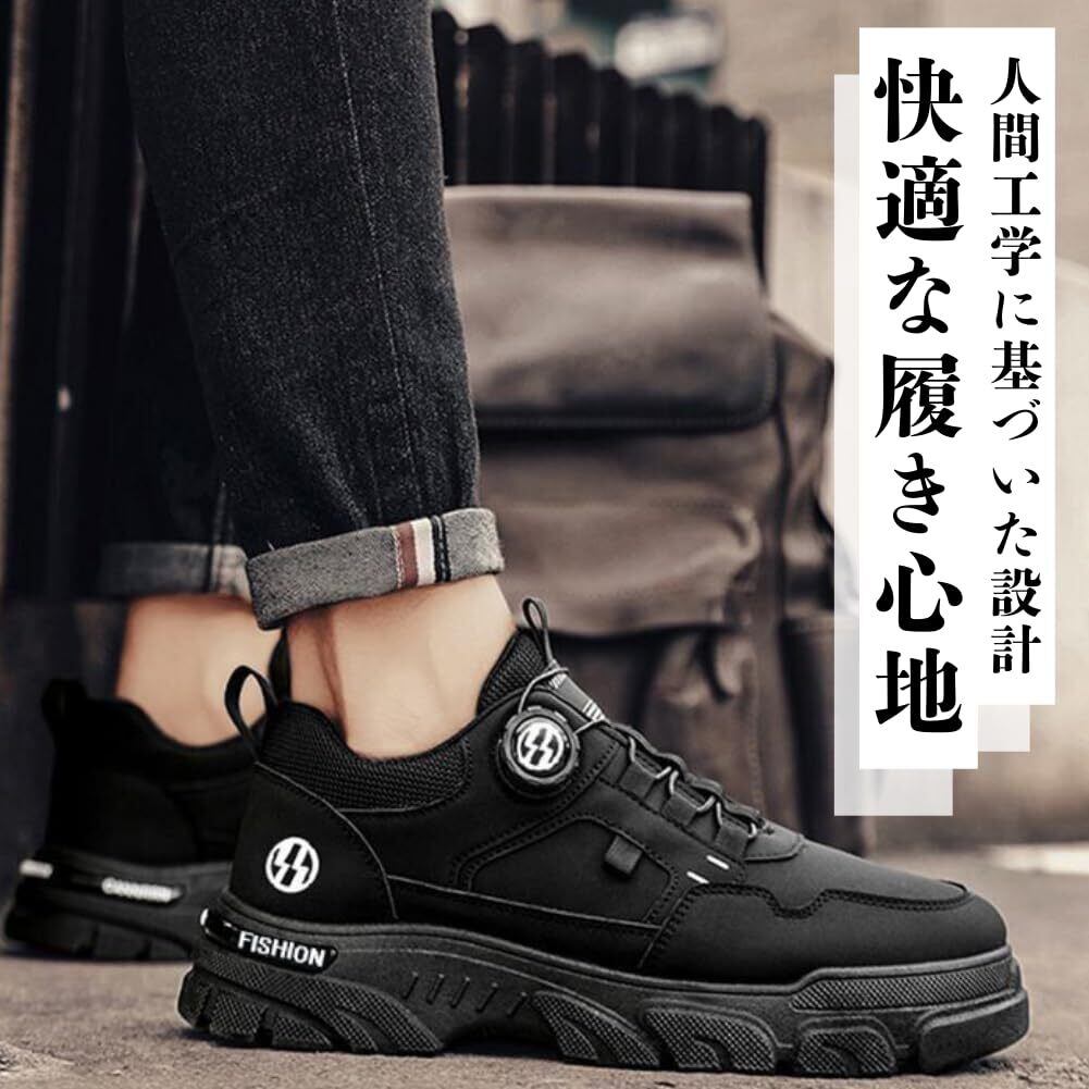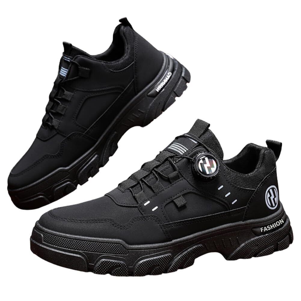 [ALVEIN] 厚底スニーカー ワークブーツ 身長アップ 4cm ダイヤル式 滑り止め 衝撃吸収 メンズ ローカット シークレット 紐なし 軽量 耐摩耗 防水 ハイキングシューズ 登山 通勤 通学