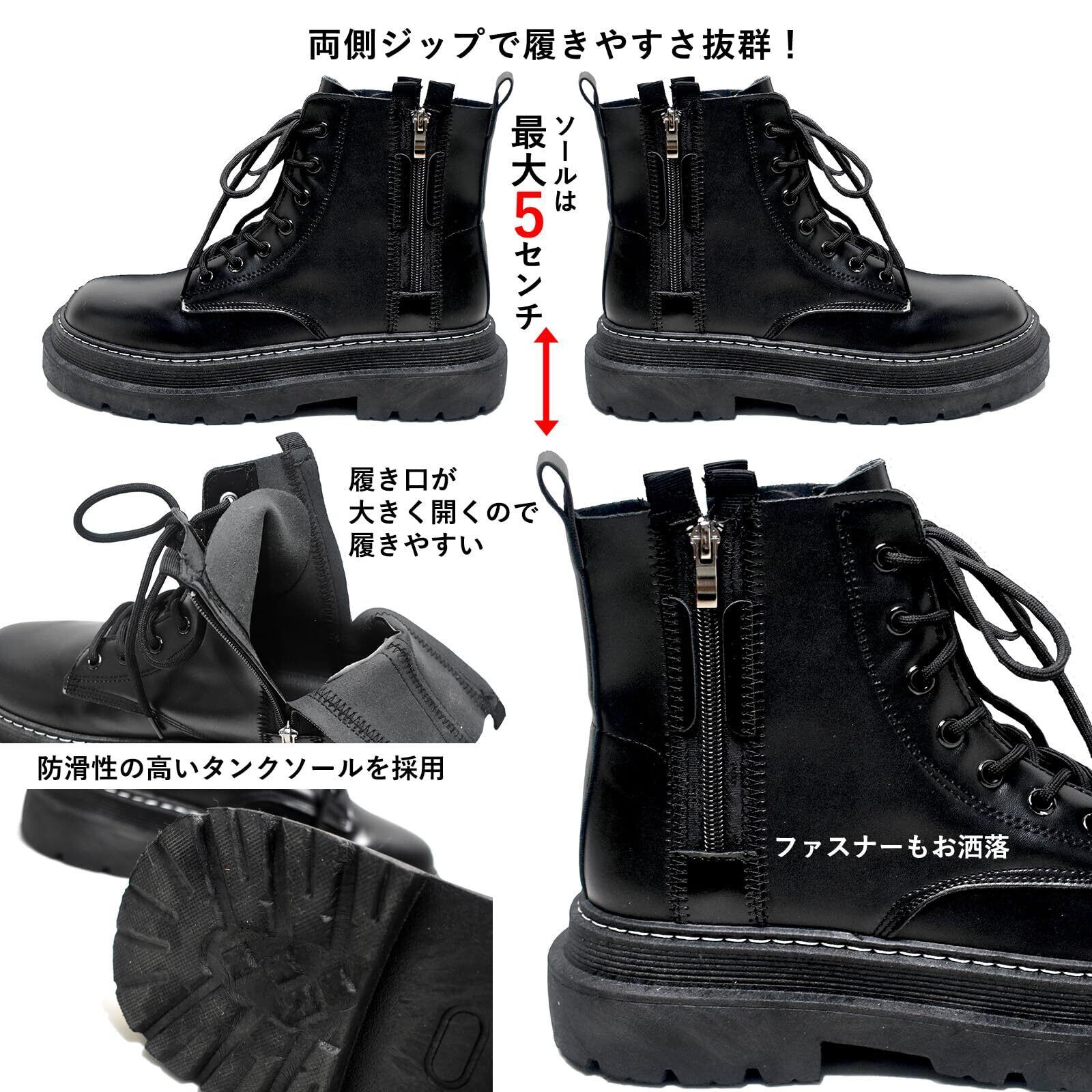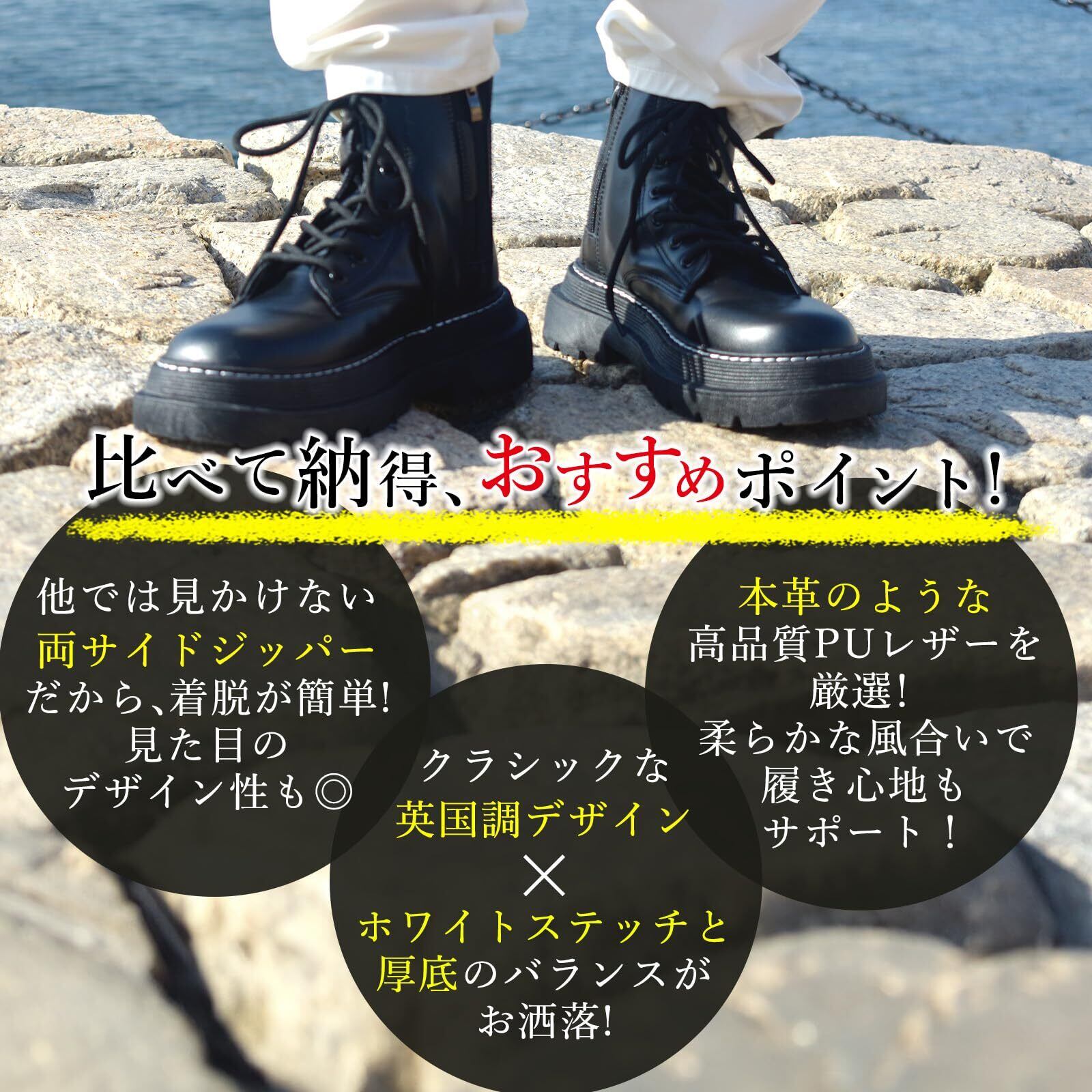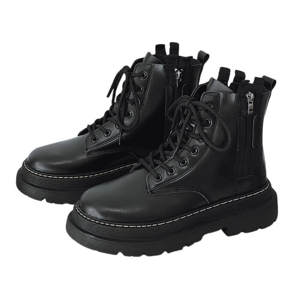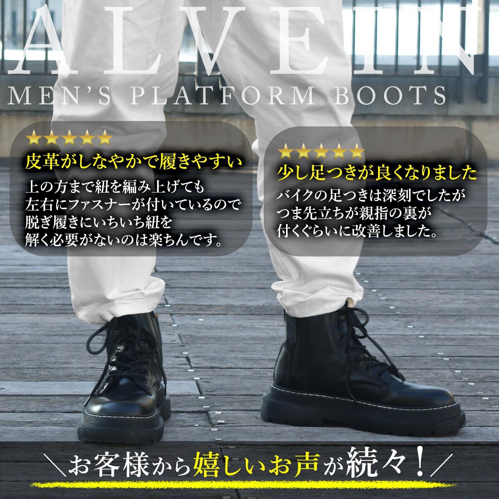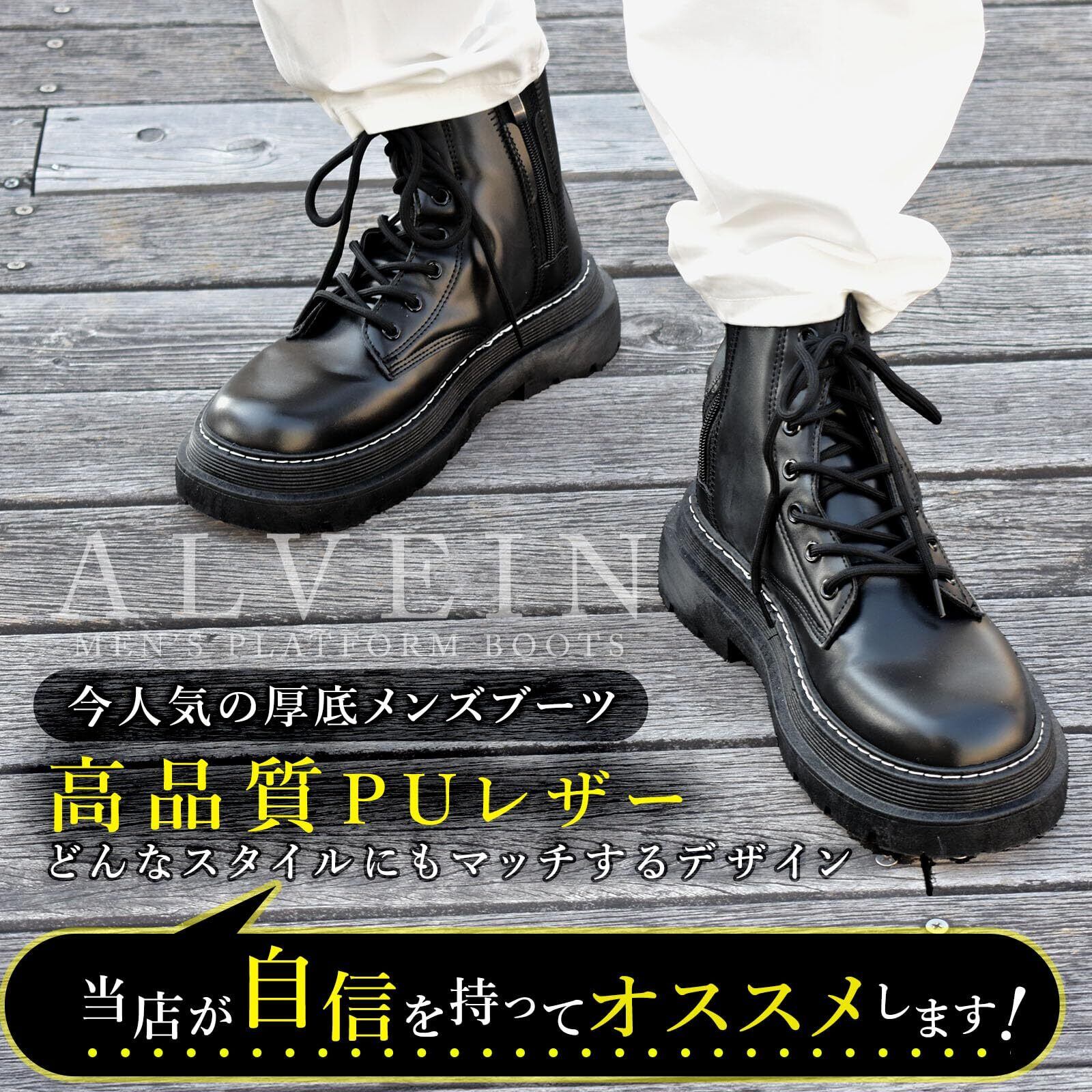 [ALVEIN] ブーツ バイクブーツ シークレットブーツ レザーブーツ サイドジップ メンズ 英国風 ハイカット ホワイトステッチ
