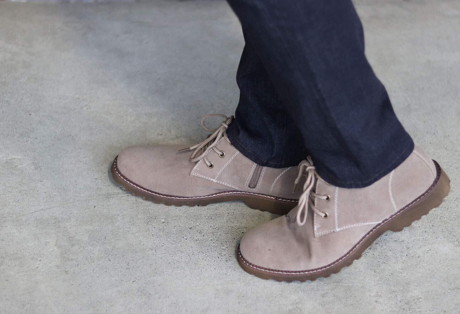 内側ファスナーを装備した脱ぎ履きが楽なチャッカブーツ。秋冬シーズンはもちろん、春ブーツとしても履けるスエード調素材の軽量ブーツ。どんなパンツにも良く合い、合わせるパンツを選ばないおススメのブーツです。※ブラックはスエード調素材ではなく、スムースPUレザー素材になります。