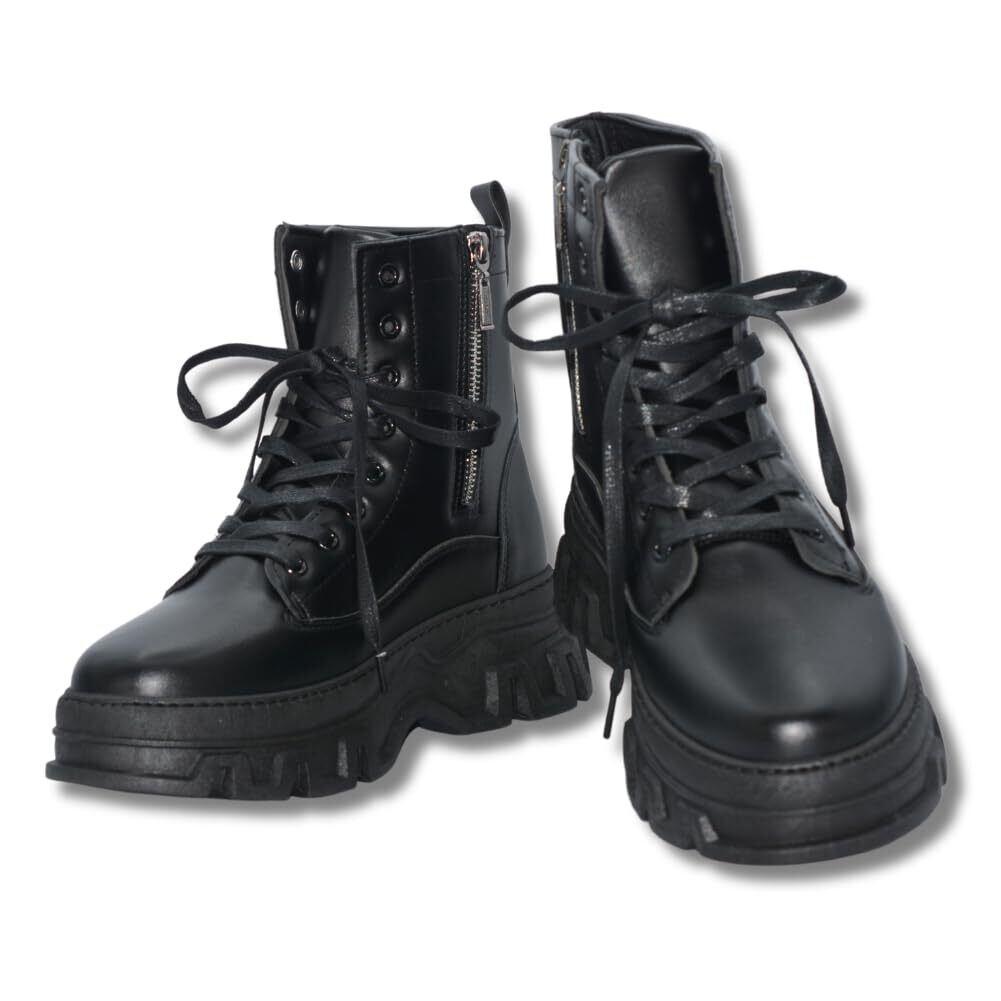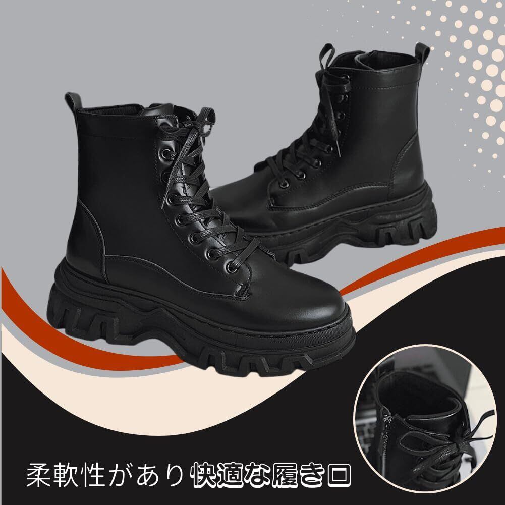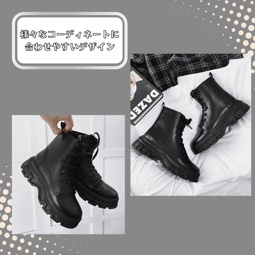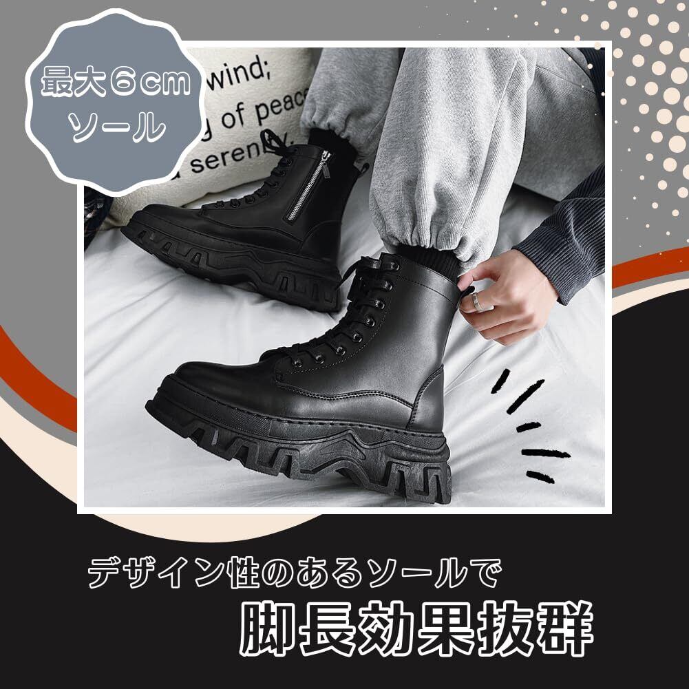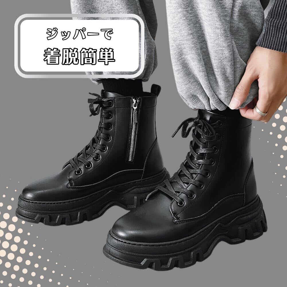 [ALVEIN] 厚底 バイクブーツ ワークブーツ シークレットブーツ ライダースブーツ メンズ サイドジップ ツーリング