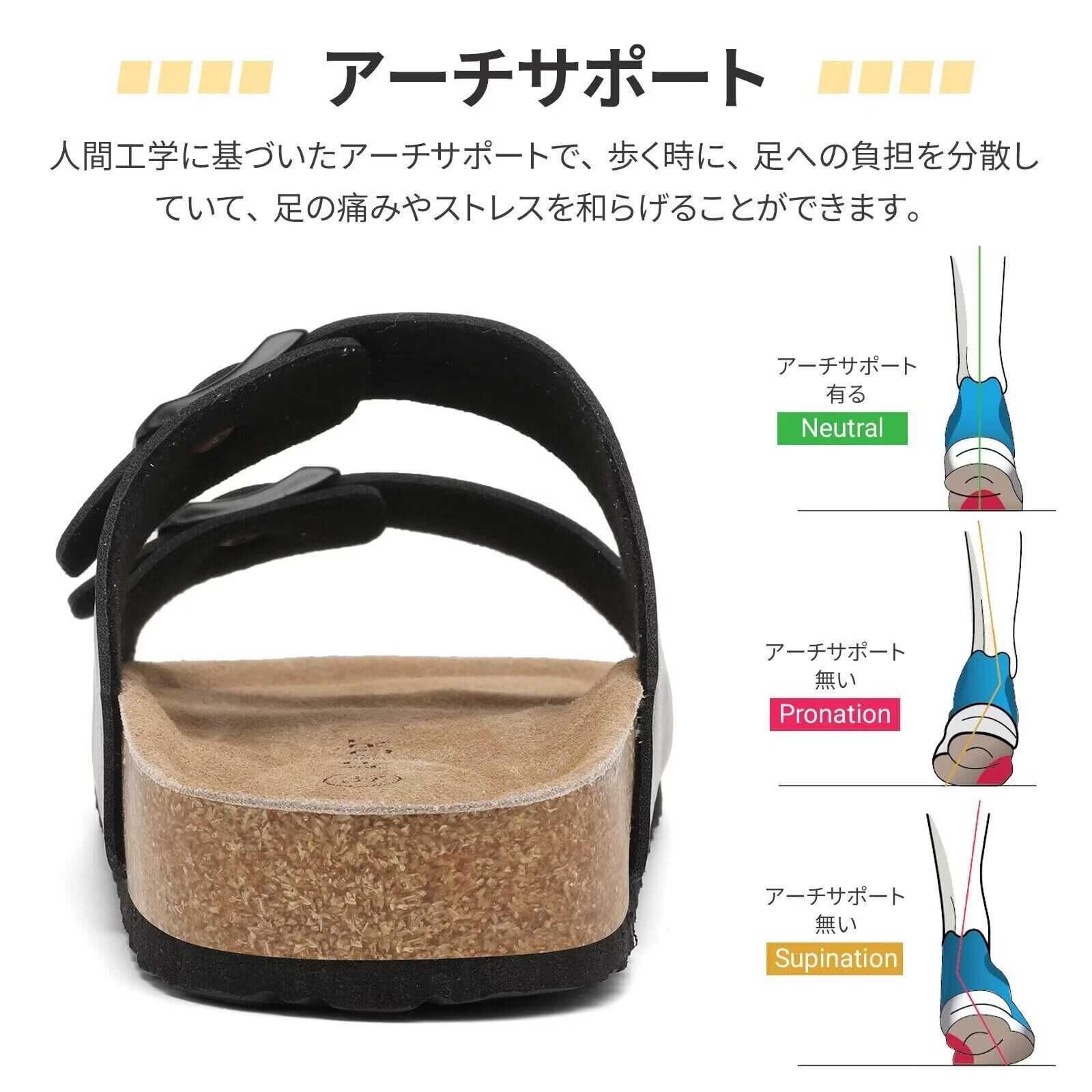[kamafy] サンダル メンズ レディース コルクサンダル、歩きやすい レザーサンダル、おしゃれ 革サンダル アーチサポートサンダル 履きやすい 外履き 室内 オフィス ビジネス 男女兼用