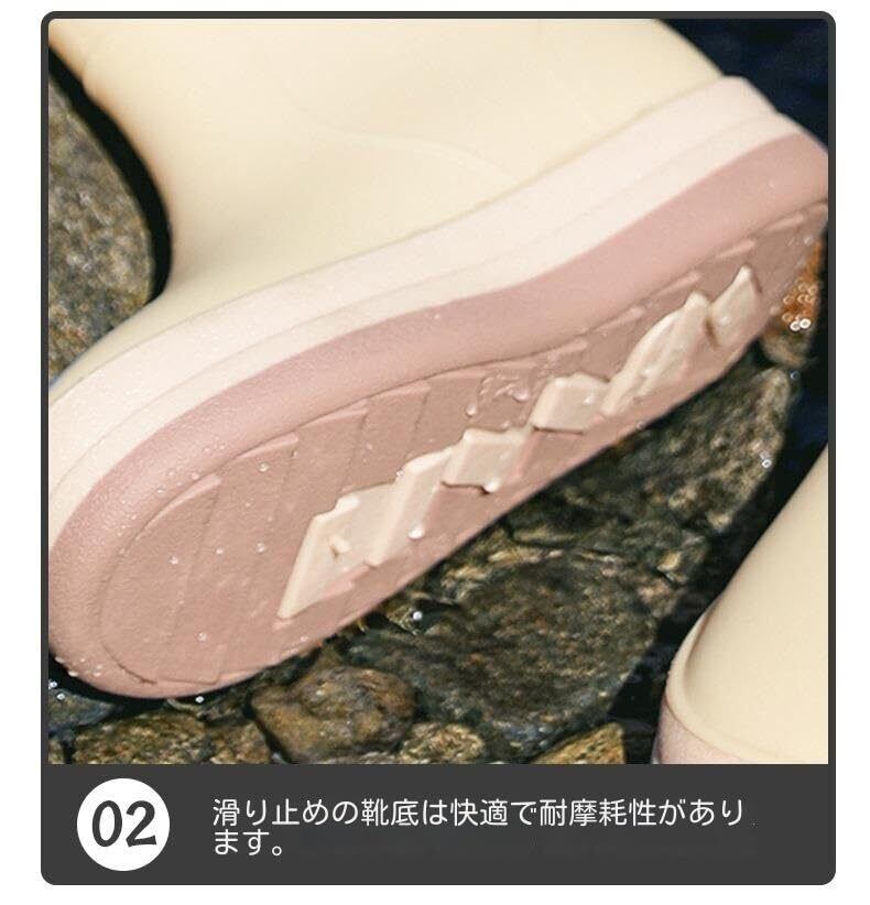 【着脱簡単】このレインブーツは着脱が簡単で、使用体験が大幅に向上します。靴の履き口は柔らかく伸縮性のあるゴムバンド素材で作られており、伸縮性に優れており、締め付け感や締め付け感がなく足首にしっかりとフィットします。履き口が広いデザインなので、初めて履く人でも、頻繁に脱ぐ人でも、履き心地と利便性を実感できます。