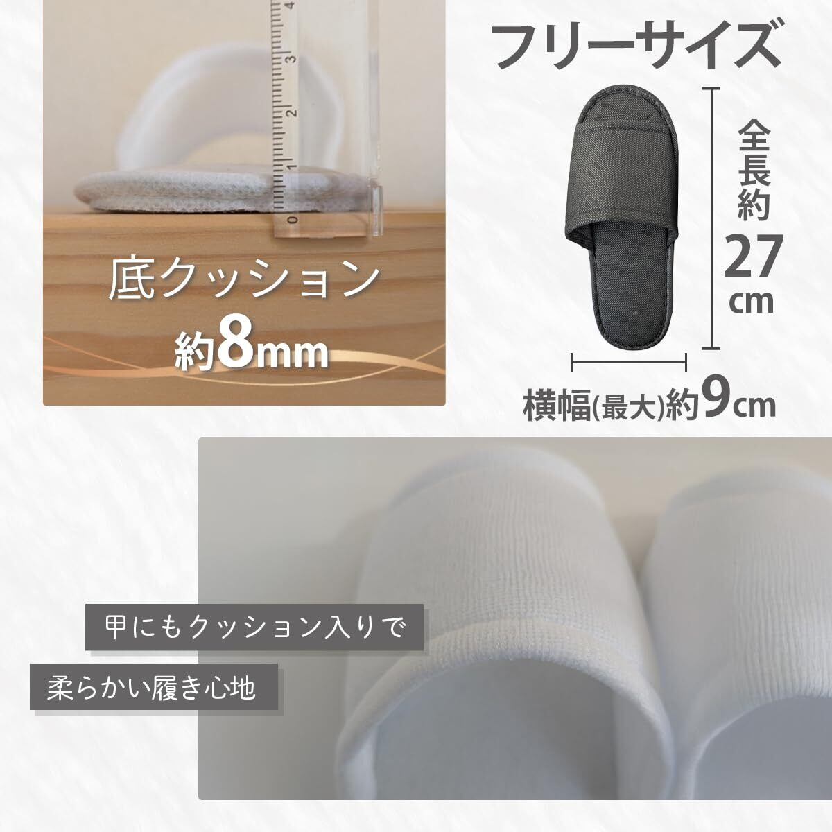通気性が良いので蒸れにくく、春夏秋冬問わず1年を通してご使用いただけます。 業務用としても使用されており、自宅用としても、来客・トイレやベランダ・飛行機や新幹線での移動時にも便利です。