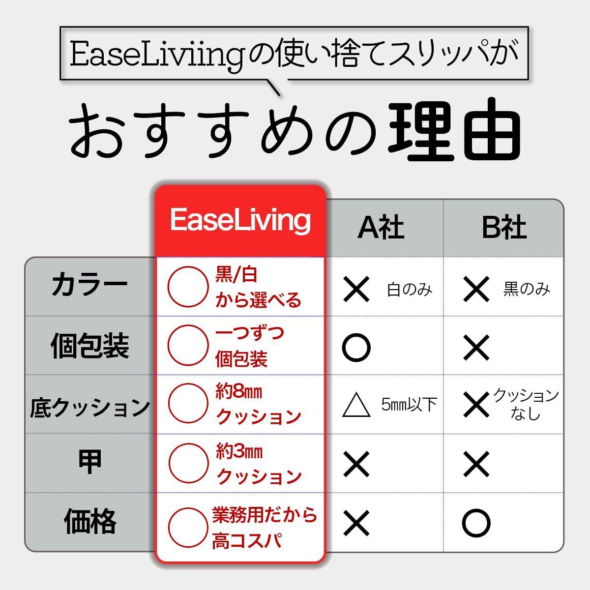 [EaseLiving] 使い捨てスリッパ 個包装 10足 セット 黒 白 業務用 来客用 防災 機内用 黒 ブラック