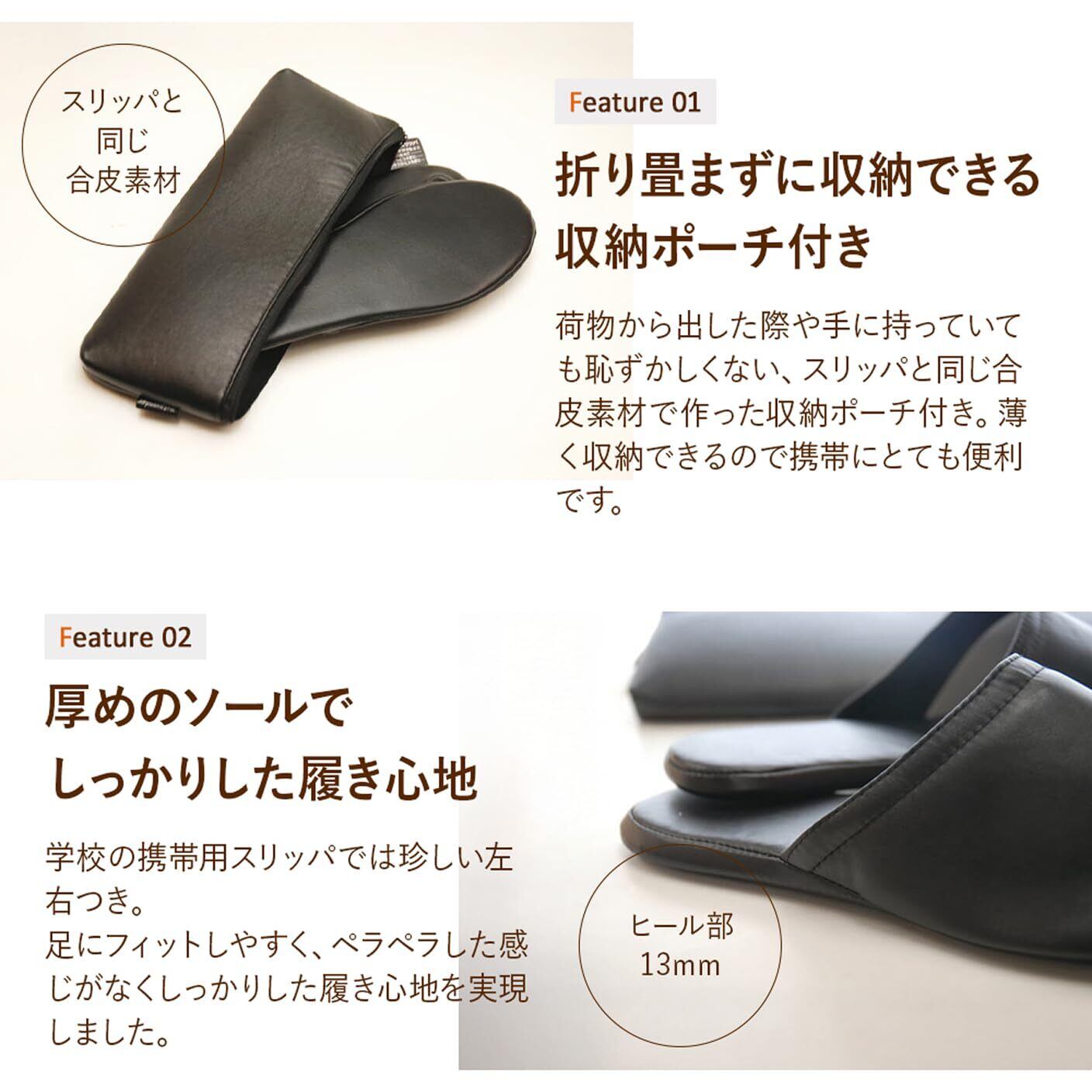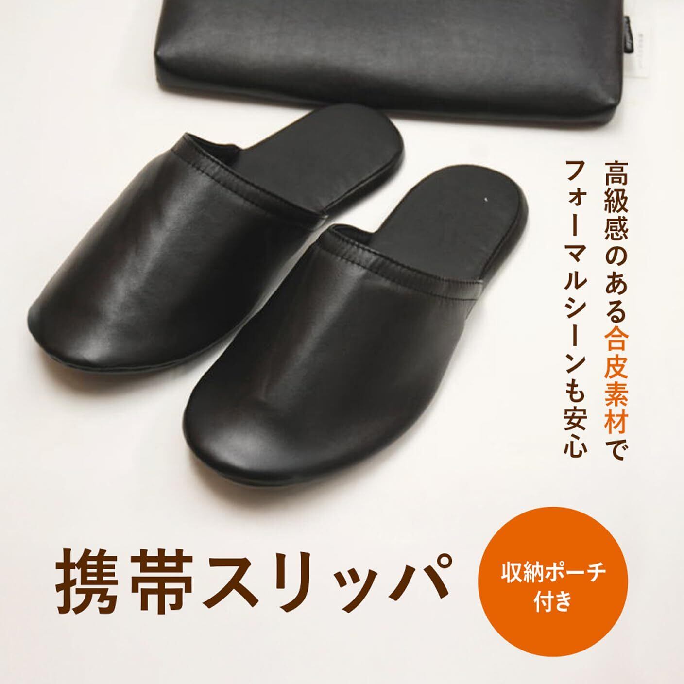 メンズ用PUレザー製携帯スリッパ スリムに収納できるポーチ付き フォーマル 面接 お受験 学校参観 旅行