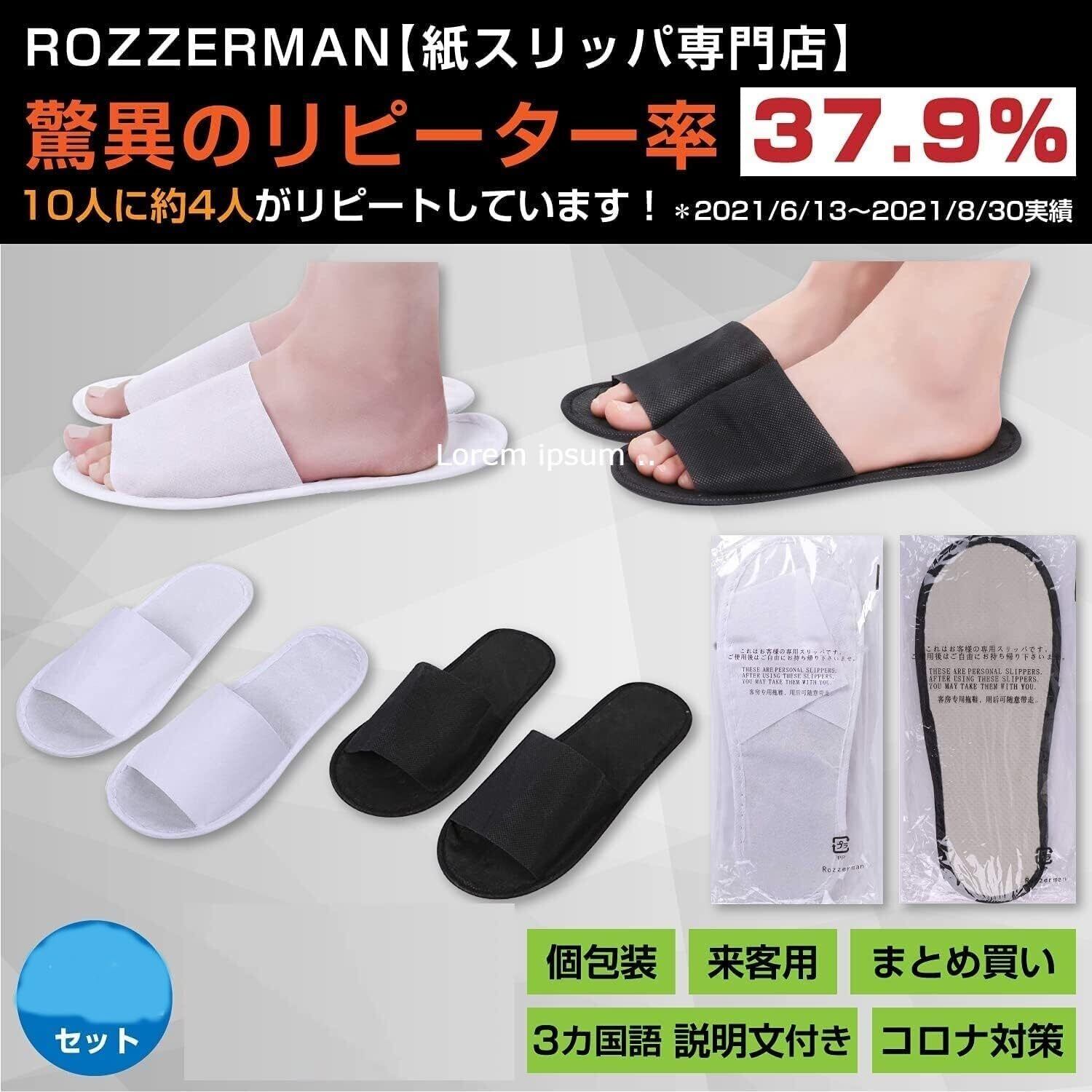 [ROZZERMAN] 不織布スリッパ セット ホワイト まとめ買い 使い捨てスリッパ 30足